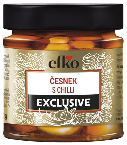 Efko Exclusive česnek s chilli je pasterovaná zelenina v oleji s výrazně pikantním profilem. Vhodný jako rychlé dochucení bez další přípravy.