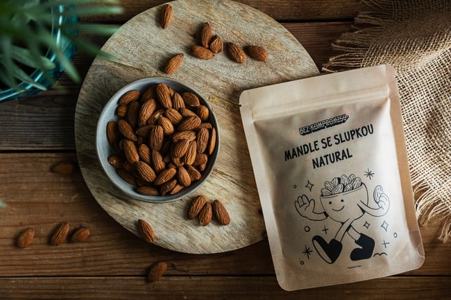 Vyzkoušejte tyto přírodní mandle Rohlík BEZ KOMPROMISU s kůží, prémiovou odrůdu Nonpareil z USA. Tato větší jádra velikosti 23/25 si zachovávají slupku, která jim dodává výraznější chuť, pevnou texturu a přirozenou křupavost. Jsou ideální pro rychlé mlsání přímo z 200g balení nebo jako všestranná ingredience do vašeho vaření a pečení.