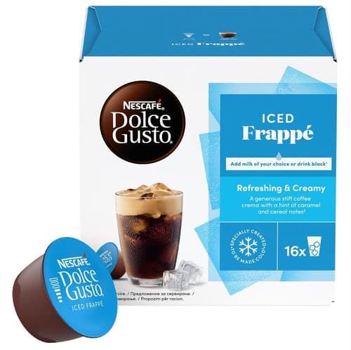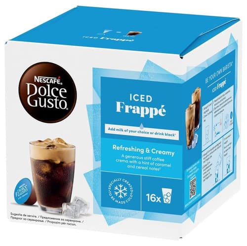 Objevte kapsle pro přípravu nápoje za studena a osvěžte se během horkých dní. Ledová káva Nescafé Dolce Gusto Iced Frappé je tady. Vychutnejte si sladké cereální a karamelové tóny tohoto kavárnou inspirovaného ledového kávového frappé, které vás překvapí autentickou chutí, krémovou pěnou a příjemným osvěžením. Stačí jen stisknout jedno tlačítko a káva je vaše.