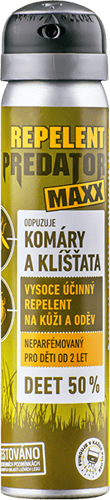 Predator Maxx je neparfémovaný repelent ve spreji pro náročnější použití v kapesním balení. Je určen proti komárům a klíšťatům včetně tropických druhů, s účinností až 10 hodin. Lze aplikovat na pokožku i oděv a je vhodný pro děti od 2 let.