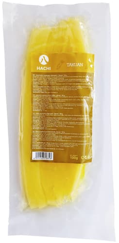 Hachi Takuan je tradiční japonská nakládaná žlutá ředkev, známá svou výraznou křupavostí a sladkokyselou chutí. Typickou žlutou barvu získává díky nálevu, často s přídavkem kurkumy. V japonské kuchyni patří mezi oblíbené pickles, které se podávají jako doplněk k hlavním jídlům.