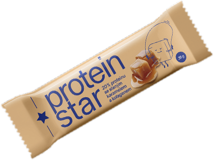Česká republika,Proteinová tyčinka Protein star s 20% podílem bílkovin a příchutí slaný karamel. Vhodná jako rychlá svačina během dne.