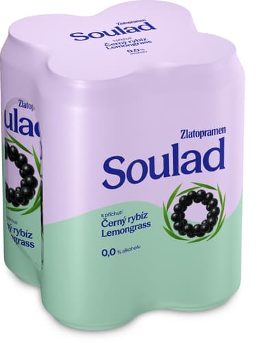 Zlatopramen Soulad 0.0% je míchaný nápoj z nealkoholického piva s příchutí černého rybízu a lemongrass.