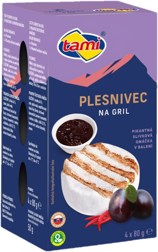 Tami Plesnivec na gril pikantní švestka je měkký plnotučný zrající sýr s bílou plísní na povrchu a přibaleným kořením. Je určený pro přípravu na grilu i v troubě. Po prohřátí získá krémovou konzistenci a chuť doplní pikantně-ovocná švestková směs.