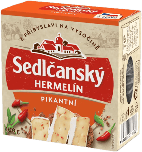Sedlčanský Hermelín pikantní je tradiční český plísňový sýr s pevnou kůrkou a jemným těstem. Chuť doplňuje směs zeleného pepře a chilli. Díky mlékařským kulturám a delší době zrání je sýr měkký a krémový.