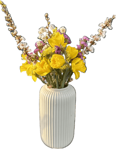 Jarní kytice s narcisy Simply Flower od Vitenplant je malý, ale výrazný jarní pozdrav – 9 stonků narcisek doplněných zelení, narašenými větvičkami a jemnou sušinou. Do interiéru přináší svěží barvy a příjemnou, přirozenou vůni.