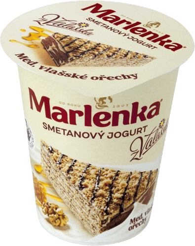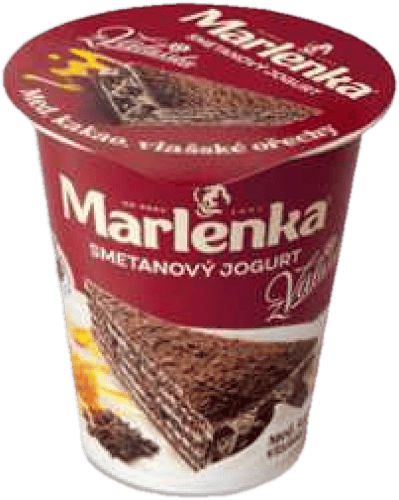 Česká republika,Smetanový jogurt s příchutí dortu Marlenka je kysaný mléčný výrobek s výraznější smetanovou chutí a sladším dezertním profilem. Obsah tuku 8 % mu dodává plnější konzistenci.