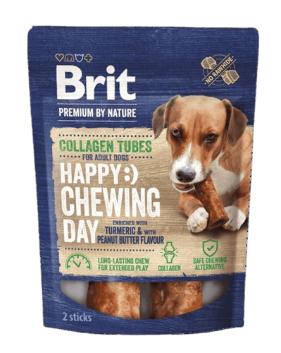 Polsko,Brit Premium by Nature kolagenové trubičky jsou doplňkové krmivo s kurkumou a příchutí arašídového másla pro psy všech plemen. Vhodné jako pamlsek nebo odměna během dne. Trubičky se podávají po jednotlivých kusech a hodí se pro zpestření běžného režimu krmení.
