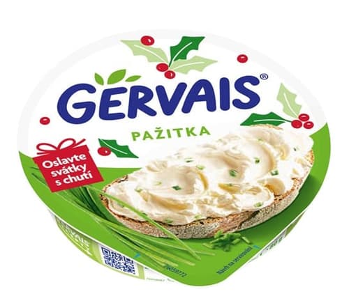 Čerstvý termizovaný sýr Gervais Original je vyrobený z tvarohu a smetany a jemné pažitky. Velmi dobře se roztírá díky své krémové konzistenci.