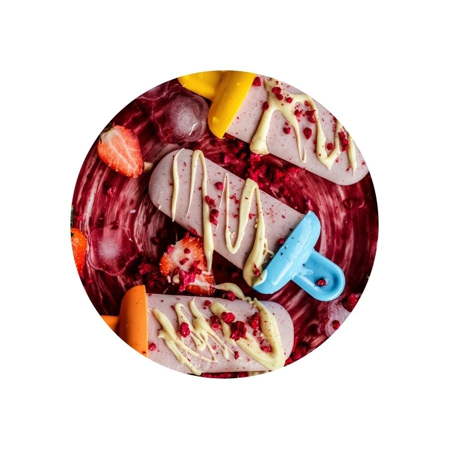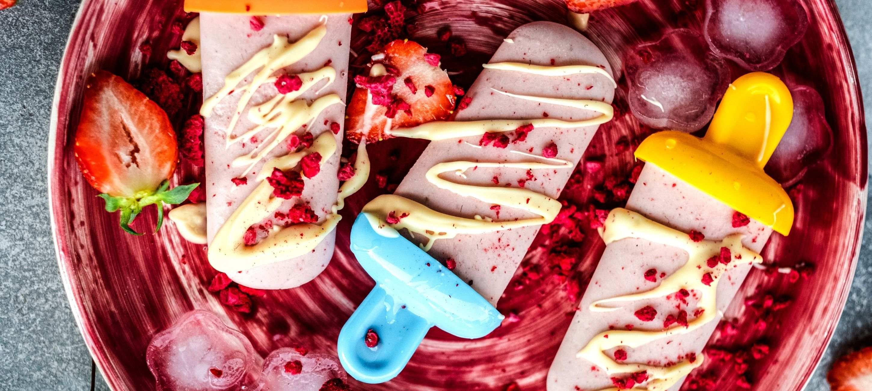 - 4If you want to enhance the popsicles, dip them in melted white chocolate or simply drizzle and decorate with crushed freeze-dried fruit.