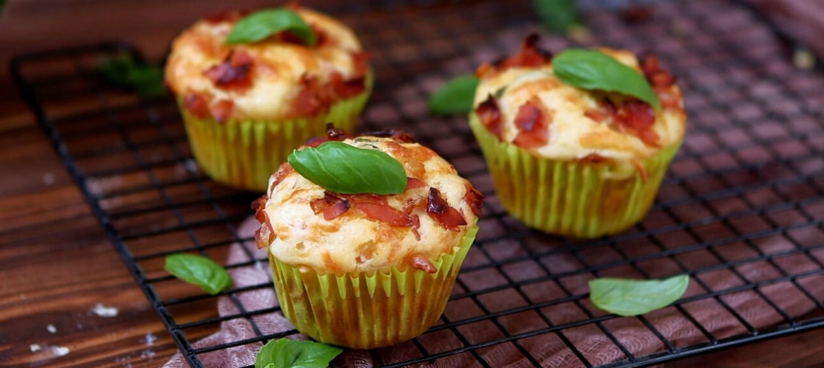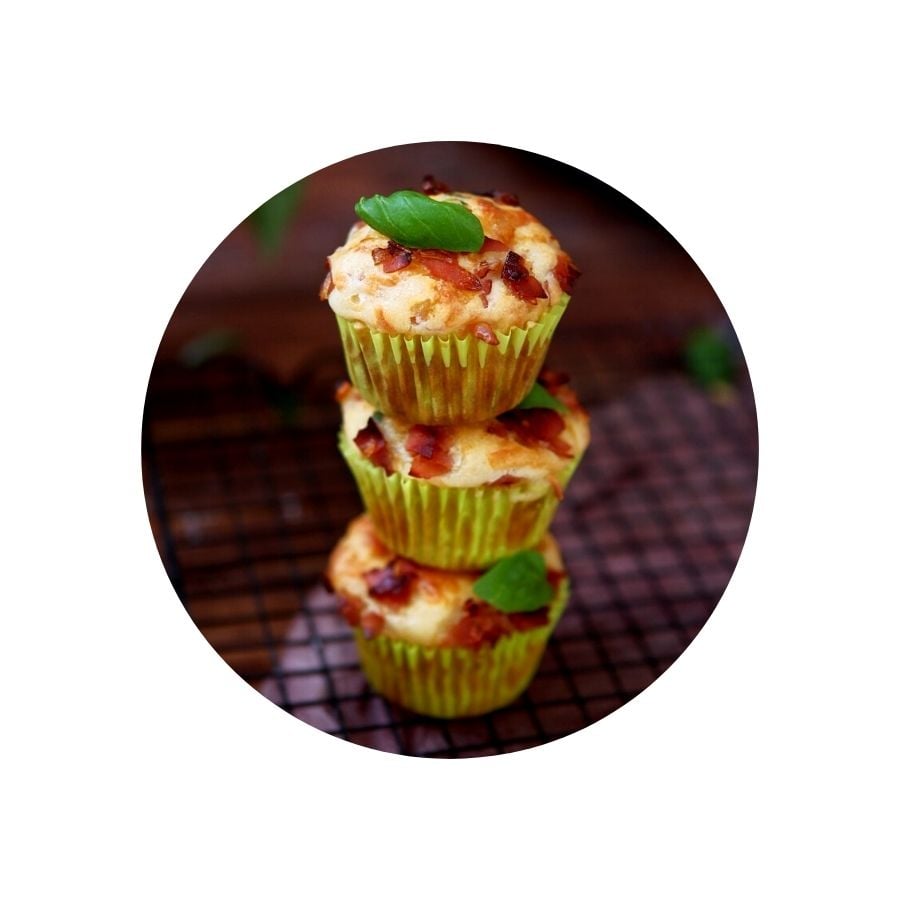Fill muffin paper cups to 3/4 full and sprinkle with caramelized shallot and ham. Bake in the oven for 35 - 40 minutes. Test with a skewer to see if the dough sticks.