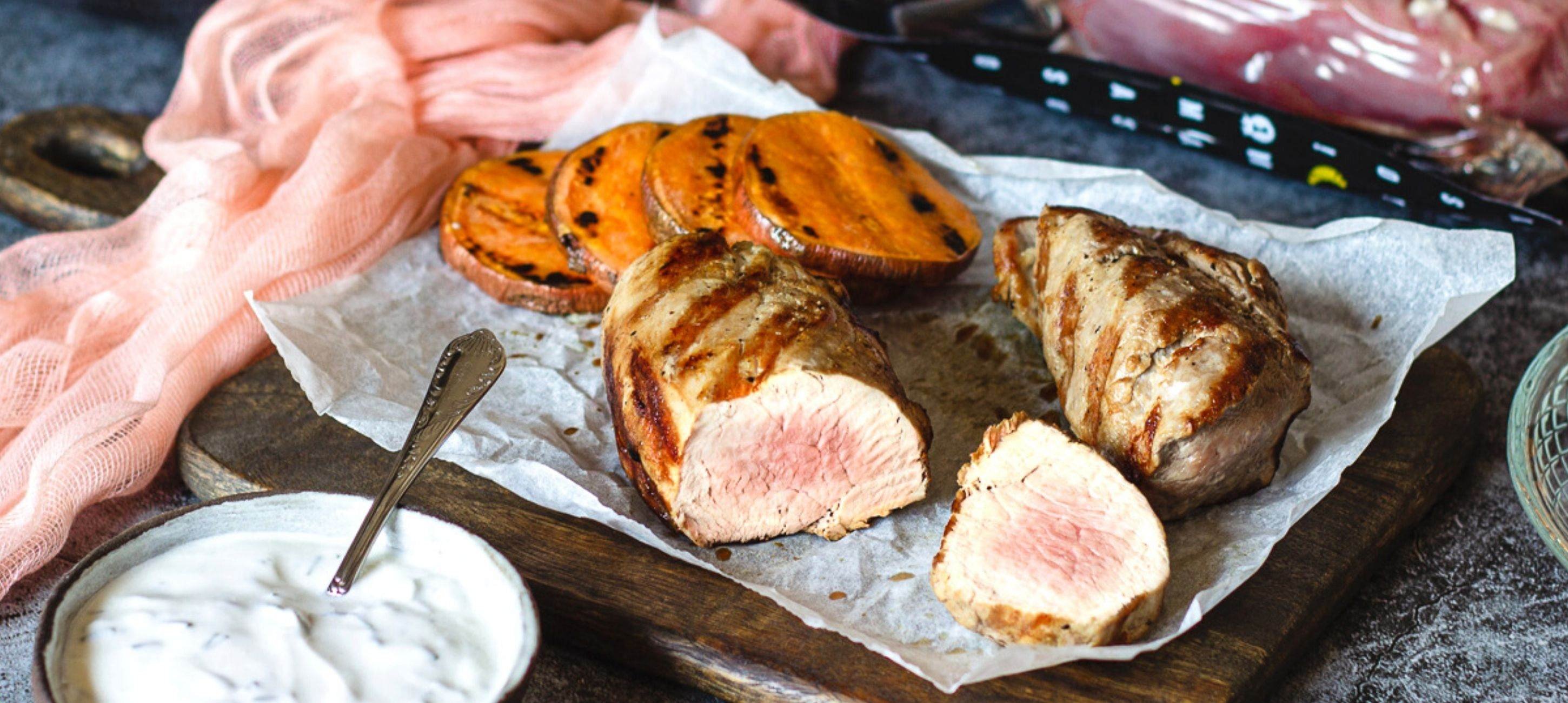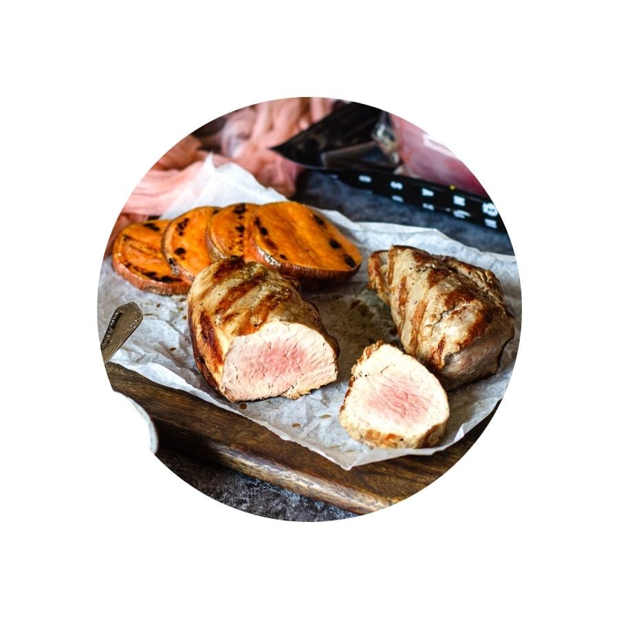 - 2Maso zbavíme blanek a uřízneme tenčí konce, které si uchováme na jiný recept. Panenku osolíme, opepříme a pokapeme olivovým olejem.