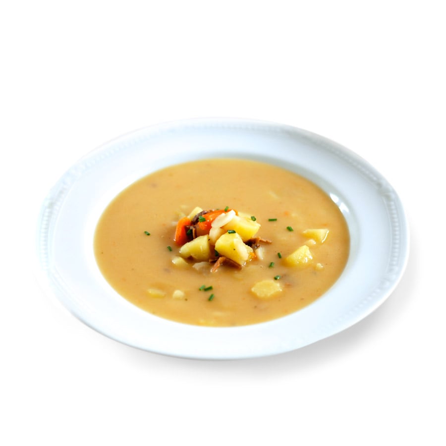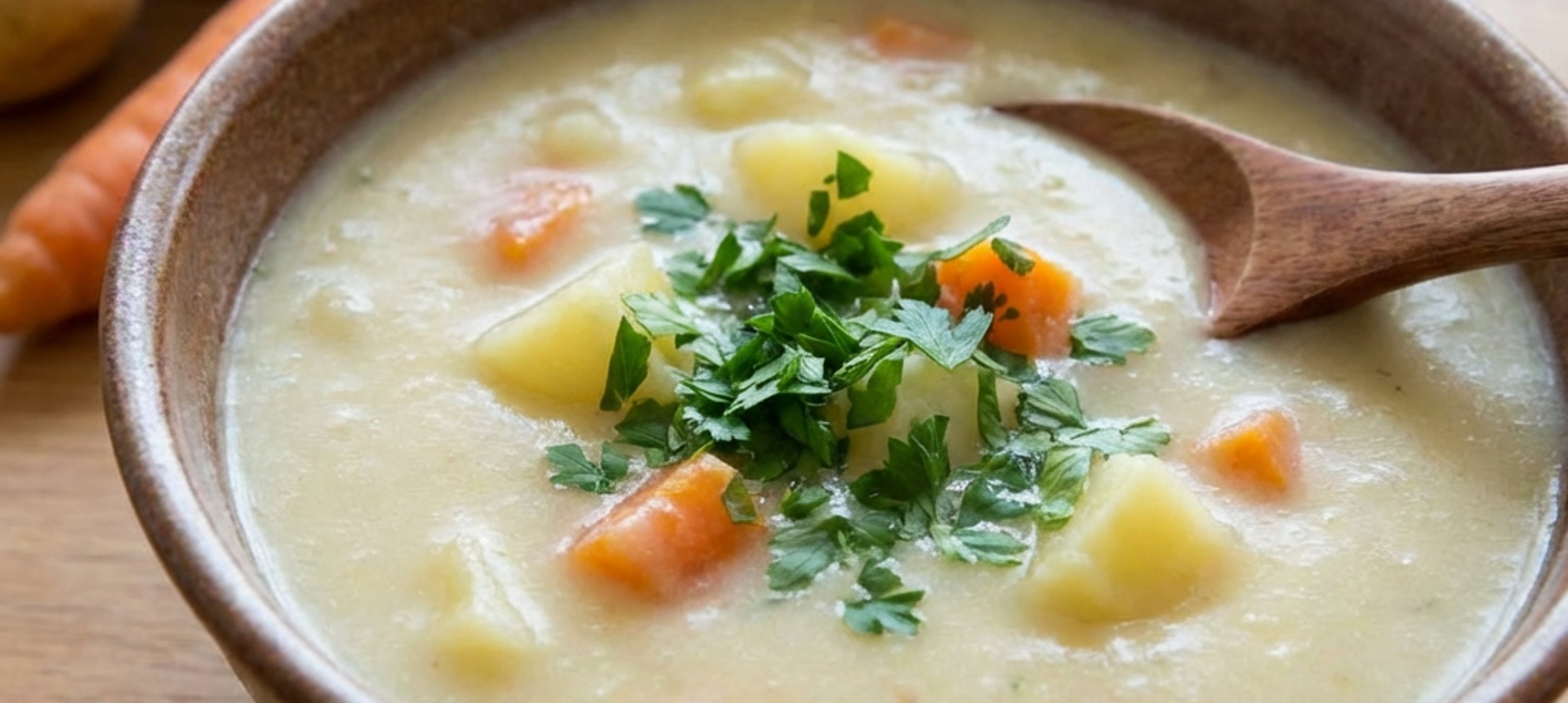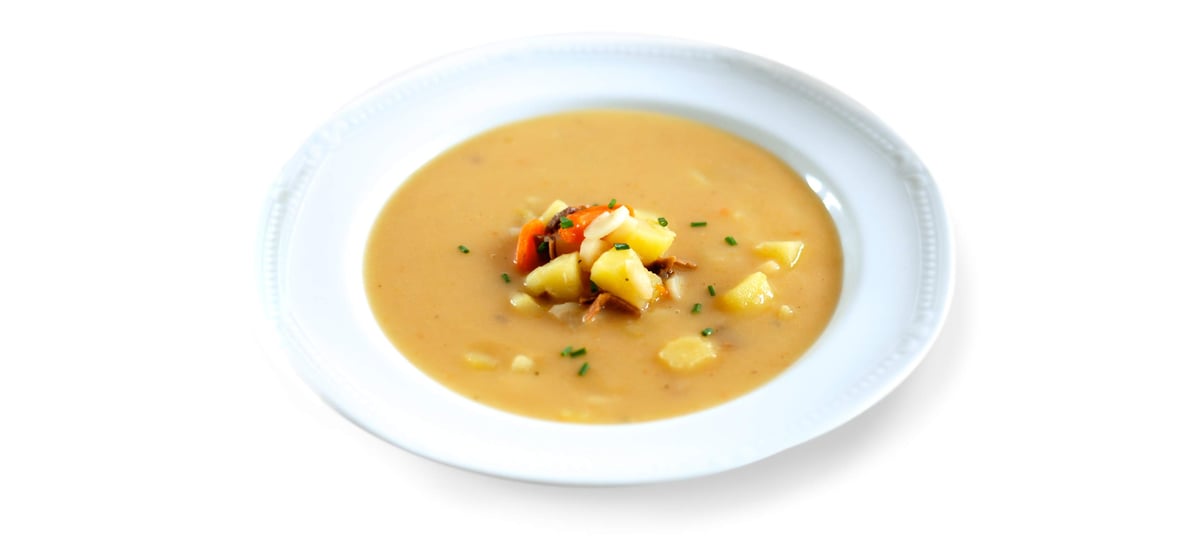 - 4Odeberte stranou dvě naběračky zeleniny a brambor s co nejmenším množstvím polévky. To, co v hrnci zbylo, rozmixujte ponorným mixérem nebo v kuchyňském robotu. Vraťte zpět odebranou zeleninu, dochuťte solí, je-li to ještě potřeba, a posypte petrželkou.