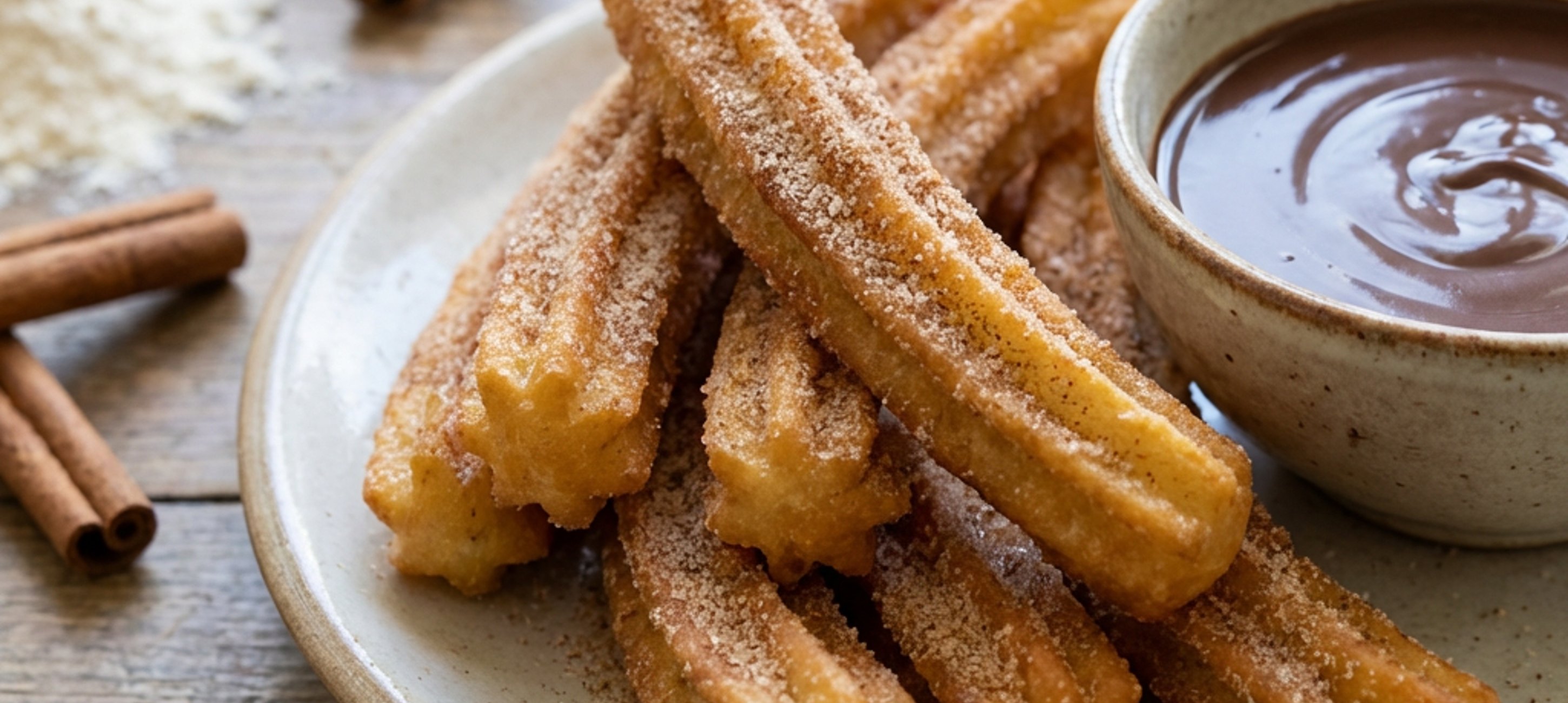 - 5Smažte 2-3 minuty nebo dokud nejsou zlatavé a křupavé, občas je v oleji otečte. Po usmažení ze všech stran churros vyjměte na talíř vyložený papírovou utěrkou a nechte okapat. Poté je obalte v cukru se skořicí. Podávejte horké s čokoládovou omáčkou.