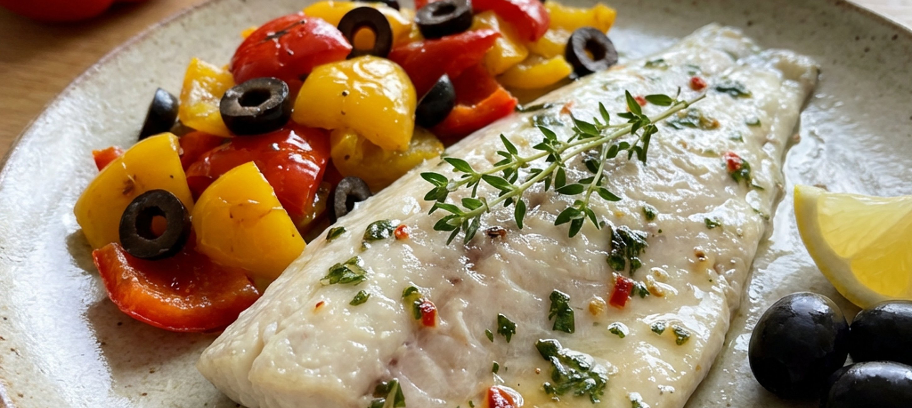 - 4Po upečení přikryjeme papriky sáčkem a necháme vychladnout. Poté lehce stáhneme slupku, očistíme od semínek a nakrájíme na kostky. Smícháme s nakrájenými olivami, petrželkou, citrónovou šťávou a olivovým olejem. Osolíme, opepříme a dáme vychladit do lednice. Podáváme s čerstvě konfitovanou rybou.
