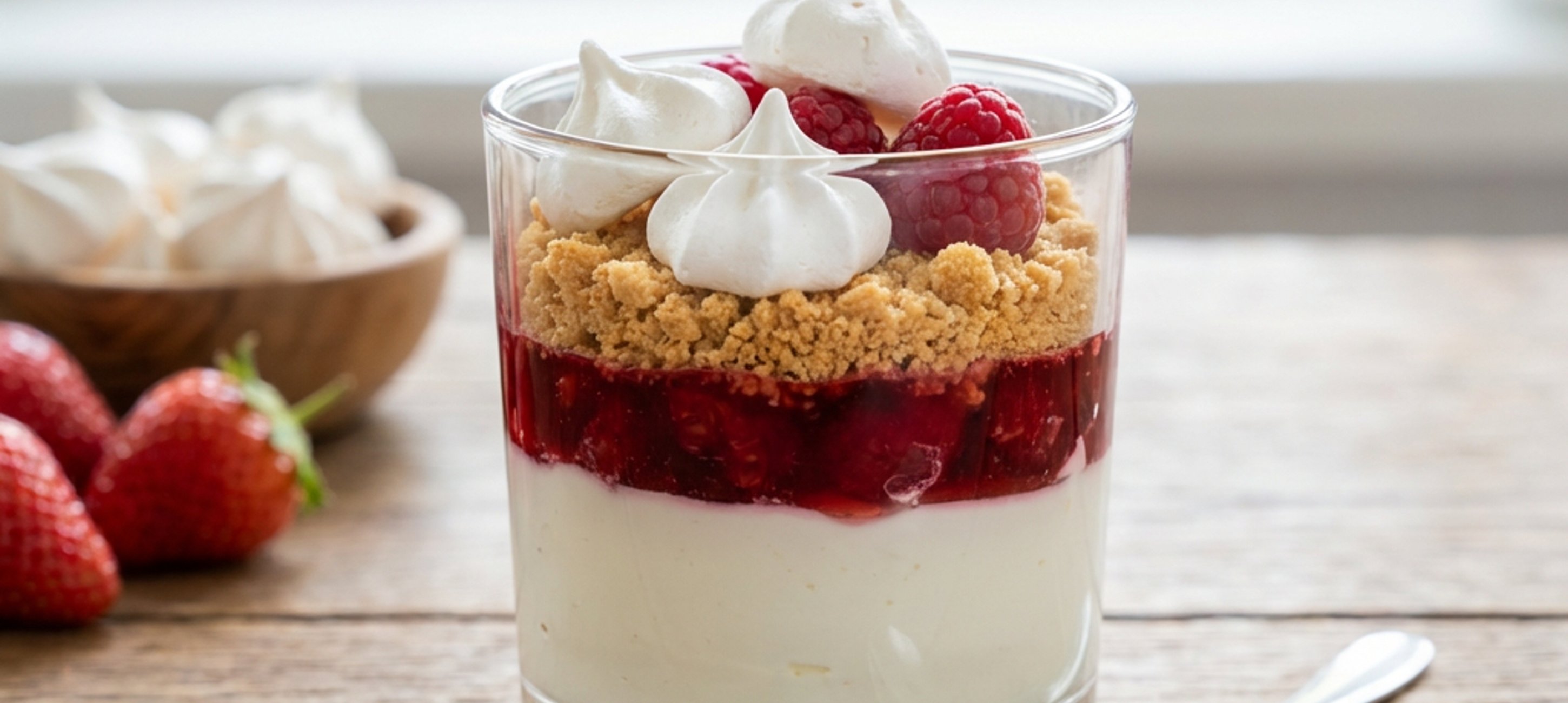 - 1Drobné ovoce – jahody, rybíz, maliny, borůvky, ostružiny – cca 250 g Sušenky (my jsme použily směs různých sušenek z Marks & Spencer) – cca 250 g Sušenky nadrťte nahrubo. Do připravených sklenic postupně vrstvěte sušenky, krém, višně a ovoce v různém pořadí a dozdobte ovocem a pusinkami.