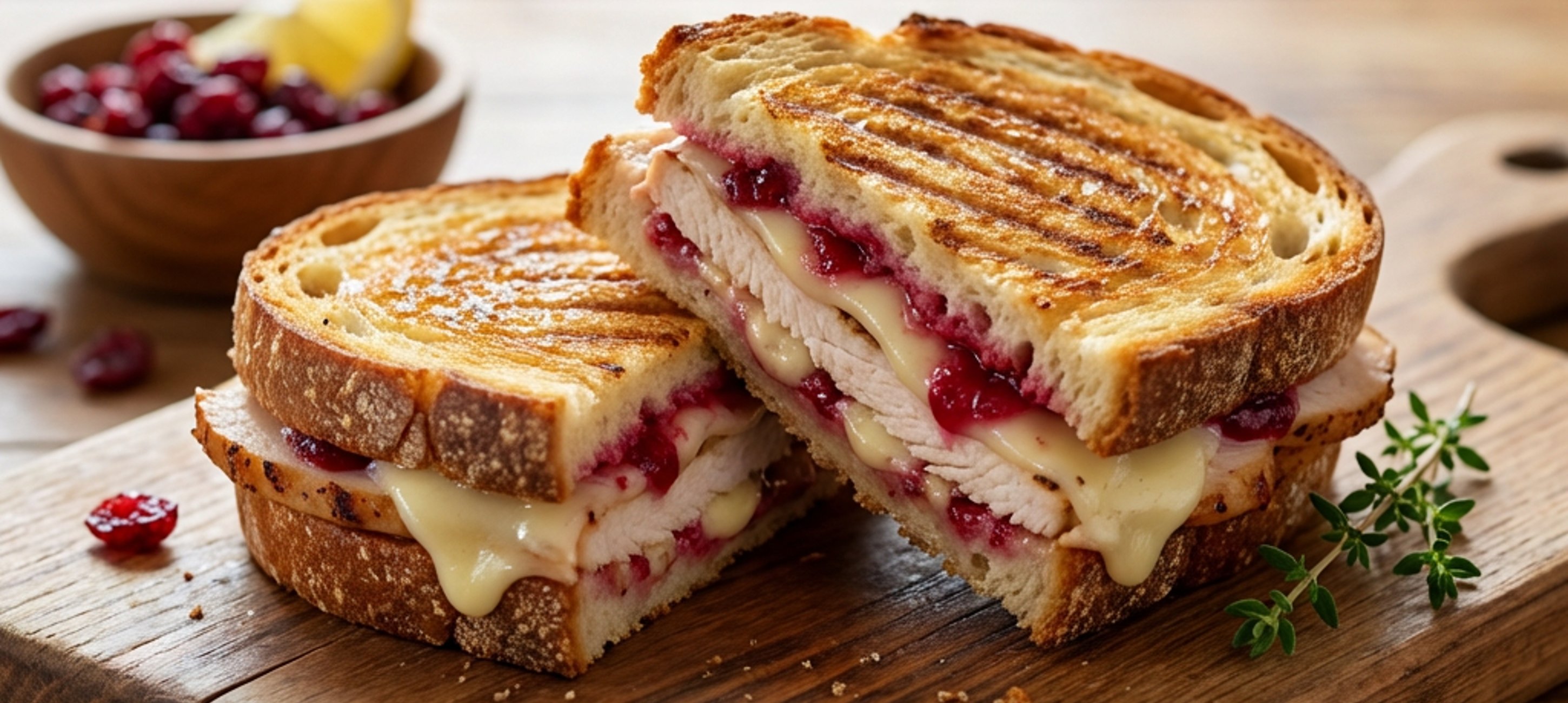 - 5Jakmile bude krůtí maso hotové, nakrájejte ho na tenké plátky a také položte na chleba. Jednotlivé plátky chleba následně přepulte, položte na sebe a vložte do grilu. Gril přiklopte a sendviče grilujte 5–6 minut na okrajové části roštu, kde je teplota méně intenzivní, nebo 6–7 minut v kontaktním grilu při středním stupni ohřevu.