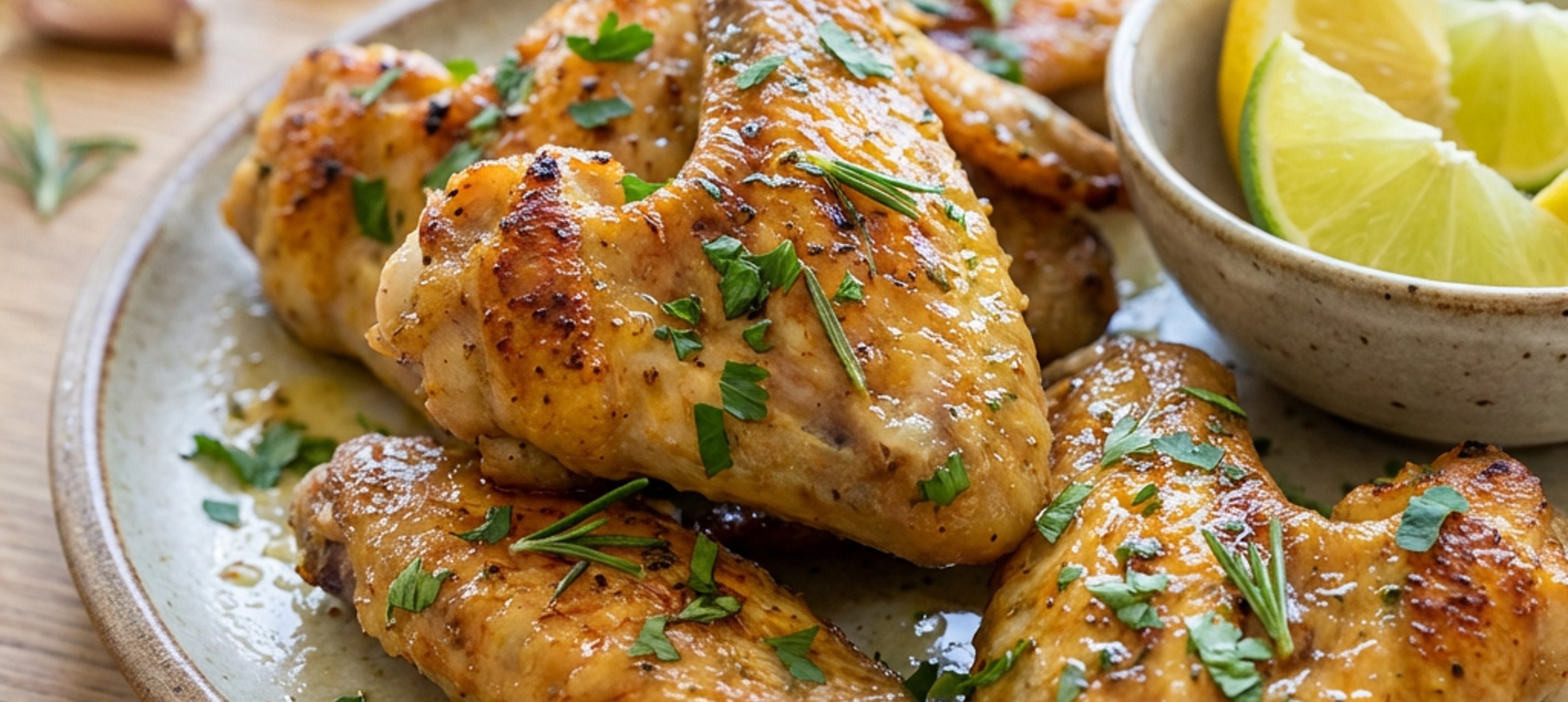 - 5Do marinády vmícháme najemno nakrájenou petržel a 3 minuty před koncem pečení křídla marinádou důkladně potřeme.
