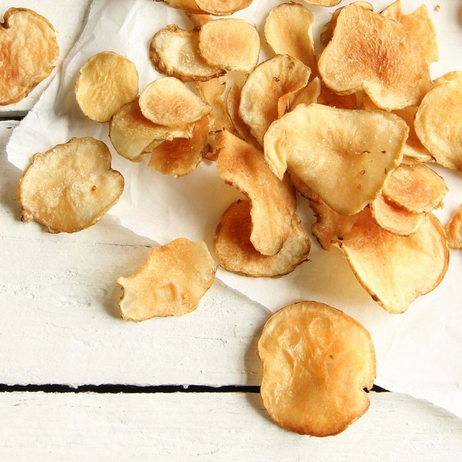 - 6After removing from the oven, let the baking sheet rest for about 10 minutes to allow the chips to cool. Only then transfer to a bowl and enjoy.