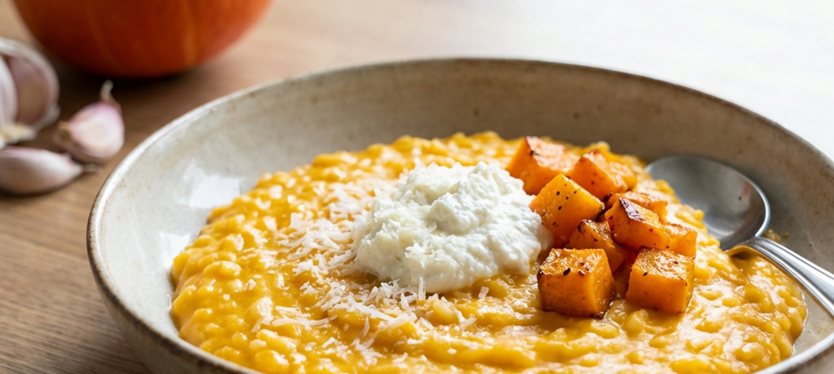 - 11Upečenou dýni a česnek rozmixujte dohladka spolu s ricottou a smetanou.