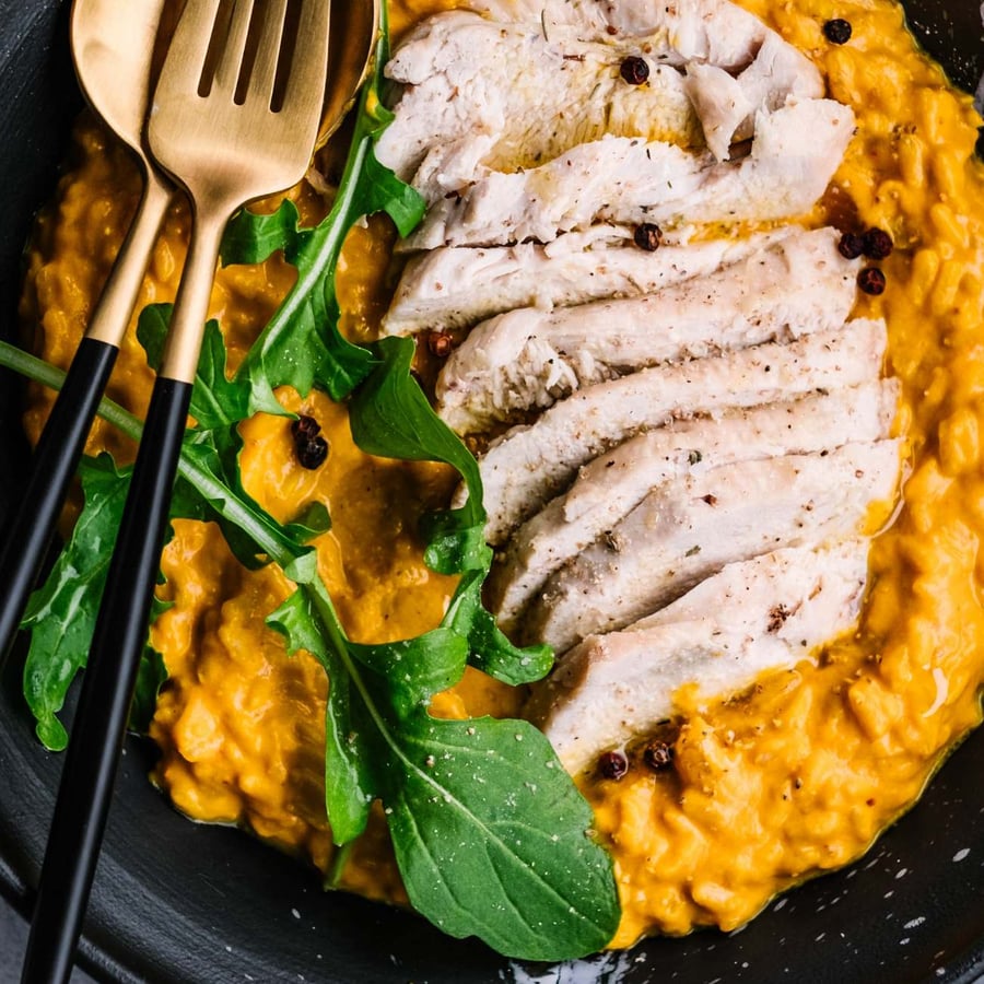 - 11Blend the roasted pumpkin and garlic until smooth along with the ricotta and cream.
