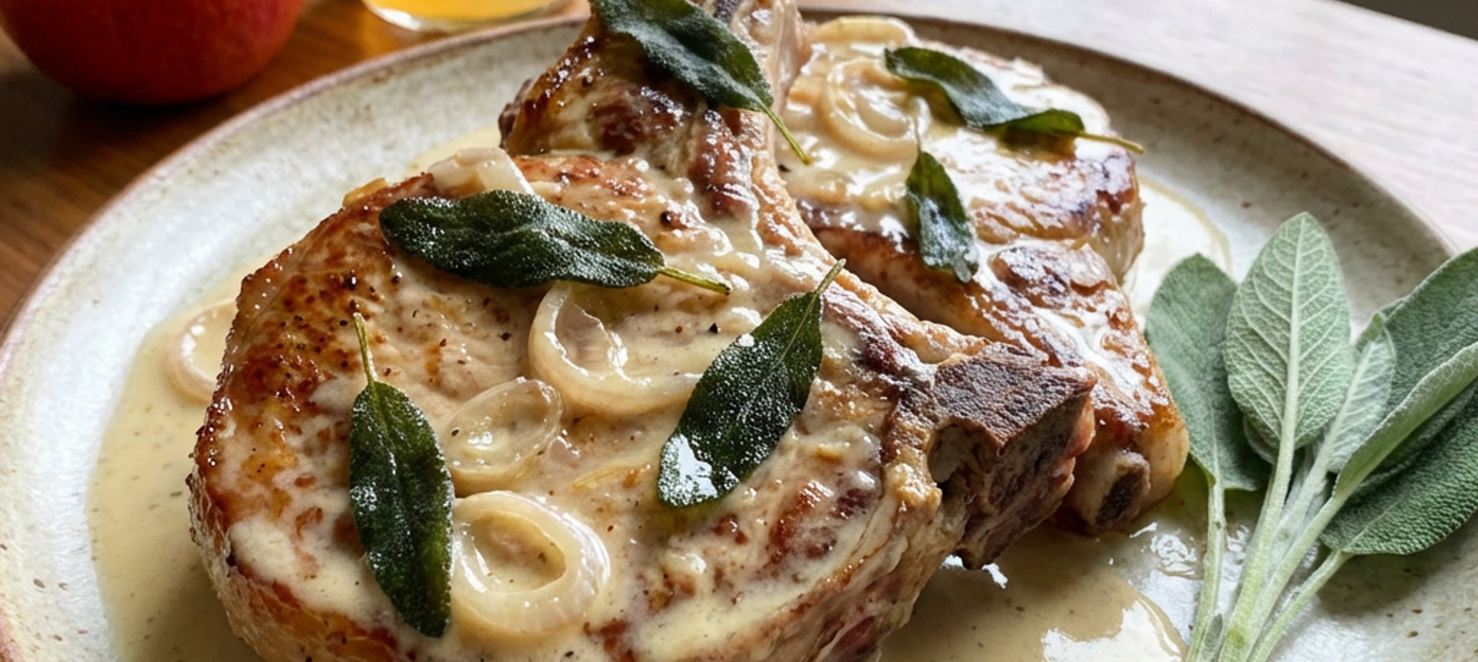- 3Kotlety přemístíme do zapékací mísy, posypeme je lístky šalvěje, vše přelijeme výpekem z pánve a dáme do trouby, která udrží teplotu masa.