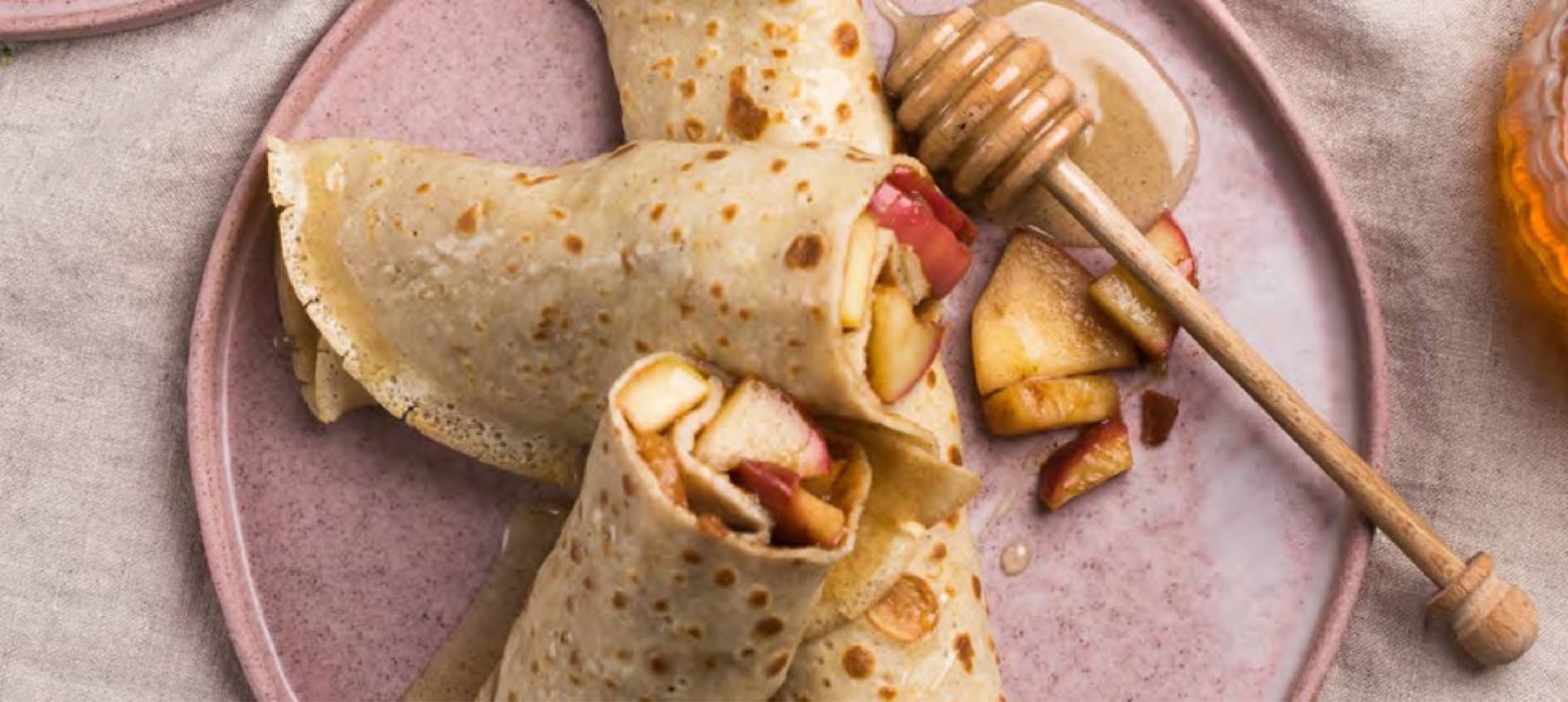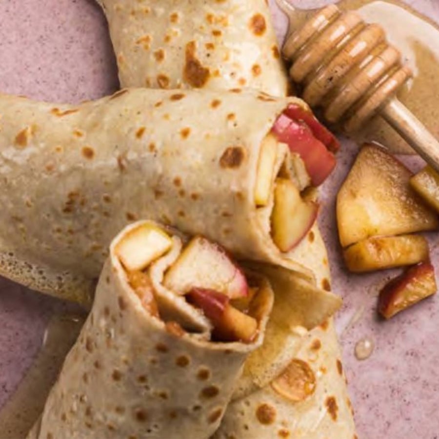 - 4Fill the finished pancakes with the prepared apple mixture, roll them up, and serve.