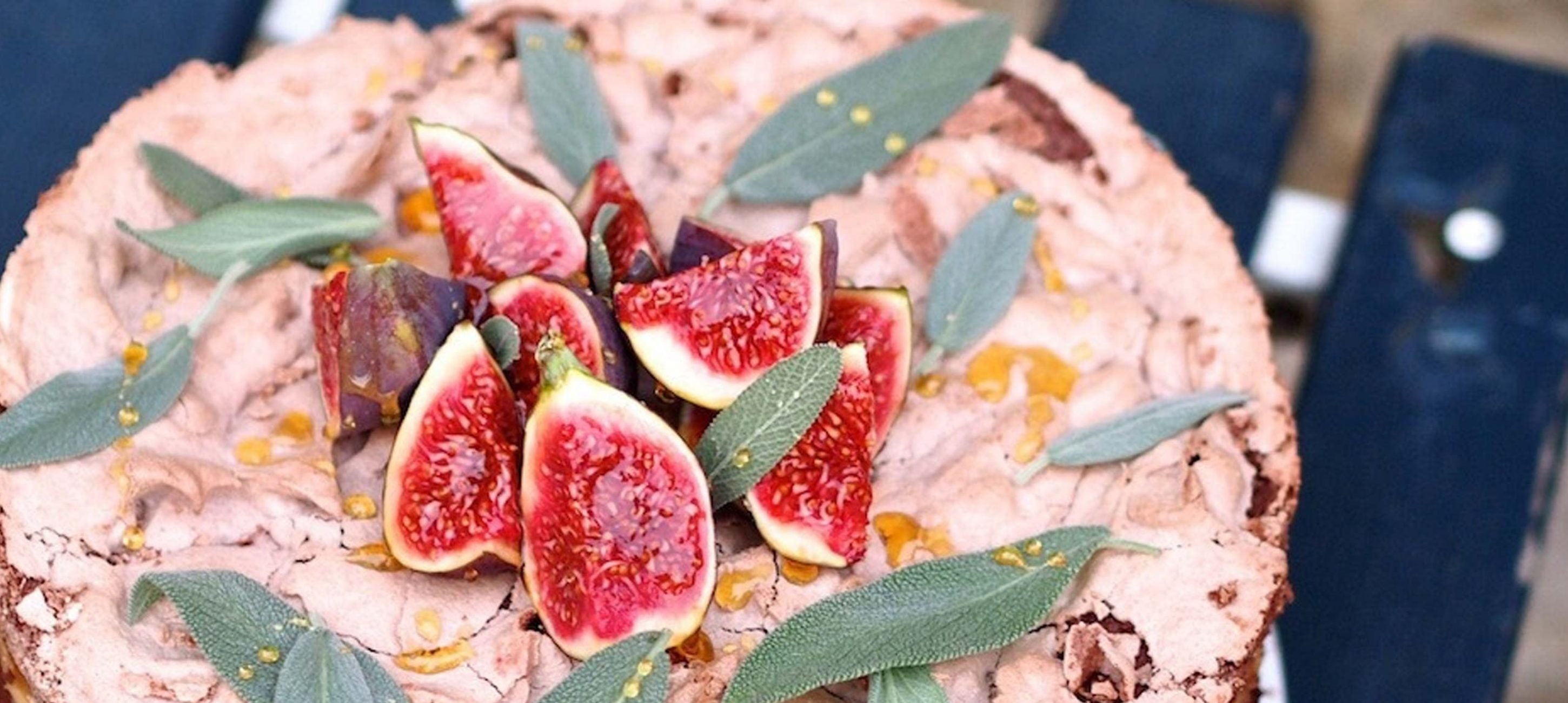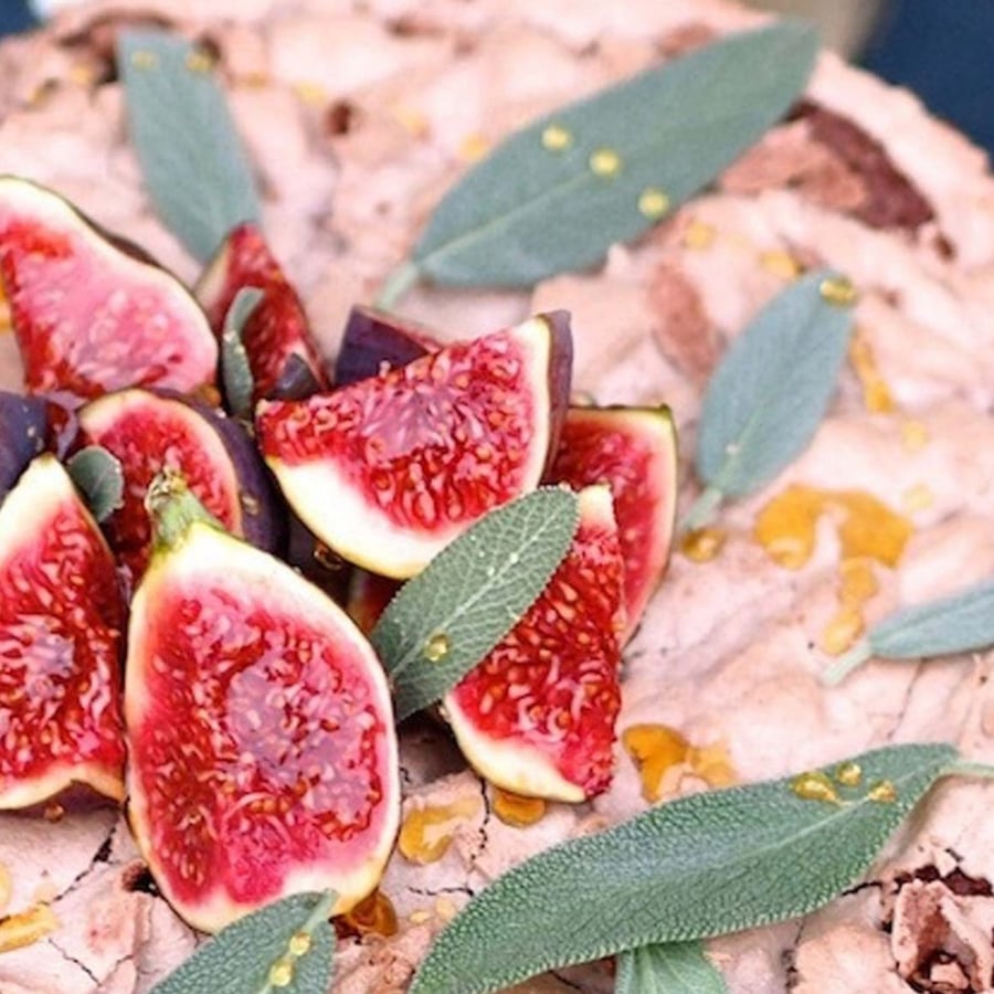 - 1Korpus vodorovně prořízneme na 2 poloviny. Jednu polovinu uzavřeme do dortové obruče a potřeme ji fíkovou marmeládou a čokoládovým krémem, přikryjeme druhou polovinou korpusu. Na něj rozetřeme arašídový krém, ten přikryjeme plátem bezé. Dort dáme vychladit na dvě hodiny do ledničky. Před podáváním rozřízneme fíky na osminky, poklademe je do středu dortu, posypeme lístky šalvěje a pokapeme medem.