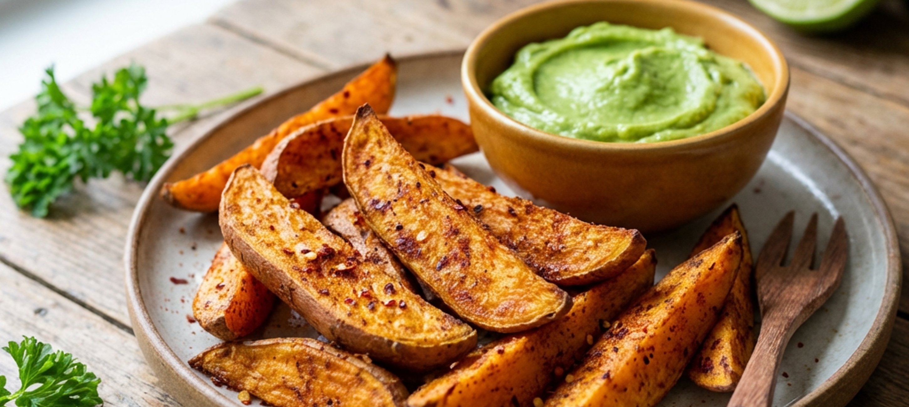 - 3Než se batáty upečou, stihnete akorát připravit dip. Avokáda zbavte slupky a pecky. Dužinu rozmixujte společně s čerstvou petrželkou, jogurtem, solí, pepřem a limetkovou šťávou. Dip dejte před podáváním ještě na chvilku do lednice.
