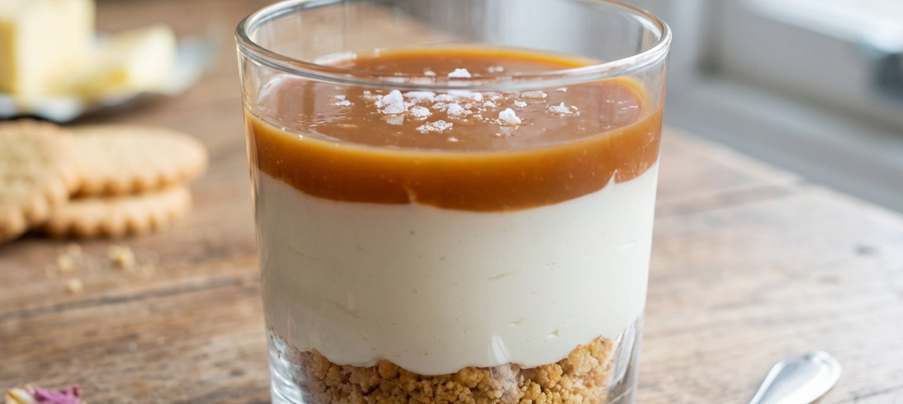 - 1Vrchovatou lžíci sušenek nasypeme na dno a lehce je přimáčkneme, na ně navršíme lžíci krému a karamelu. Vše ještě jednou zopakujeme. Cheesecake dáme minimálně na hodinu vychladit do ledničky. Před podáváním jej ozdobíme okvětními plátky růže.