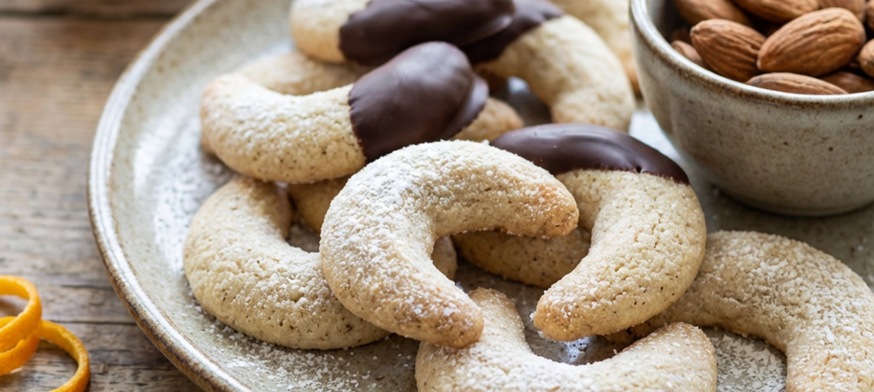 - 6Plech nebo formu s rohlíčky vložte do trouby předehřáté na 170–175 °C a rohlíčky pečte 12–14 minut.