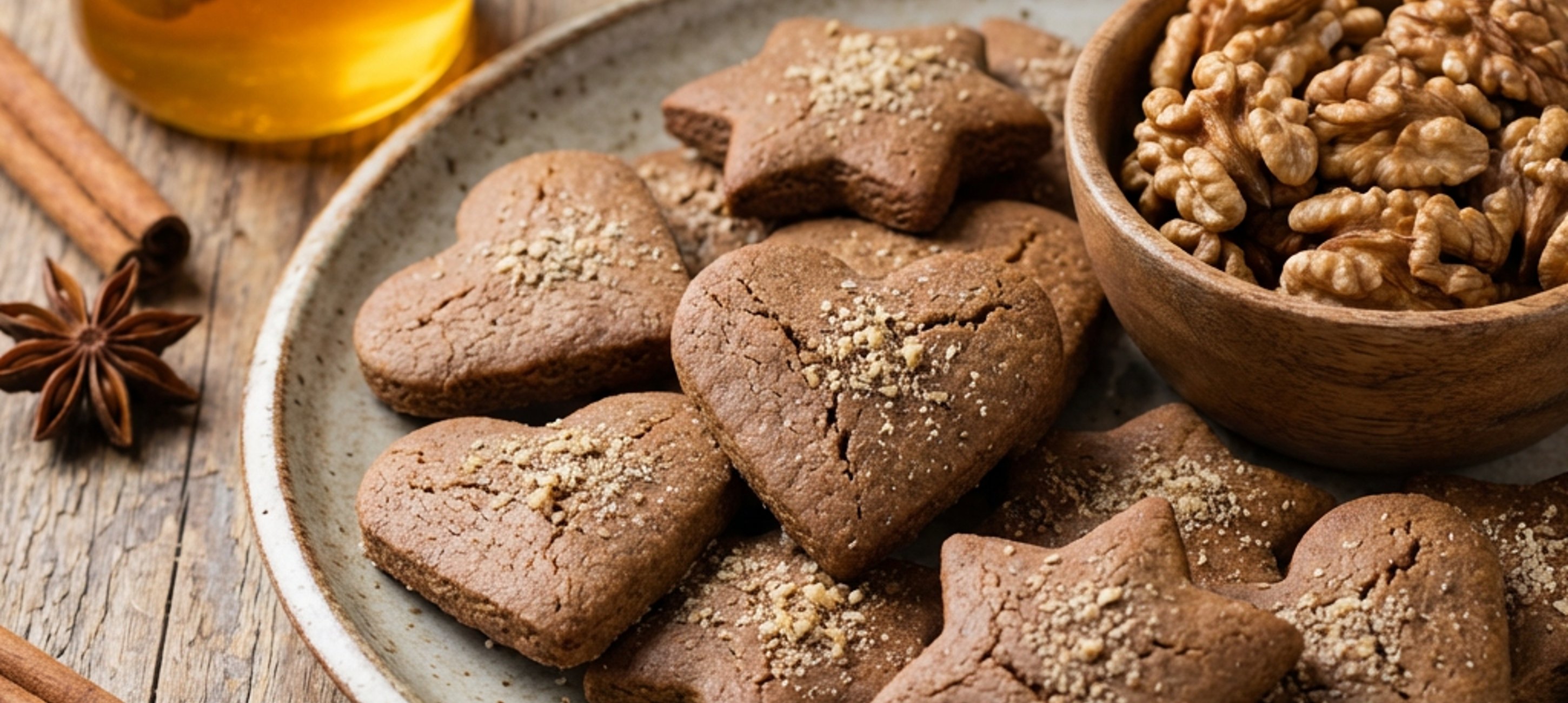 - 1Nejprve si do větší mísy dejte mouku, ořechy, jedlou sodu a perníkové koření a zamíchejte. Poté přidejte máslo, med, cukr a vejce a vše vypracujte v kompaktní těsto. Hotové těsto zabalte do potravinářské fólie a nechte 1 den odležet v lednici.