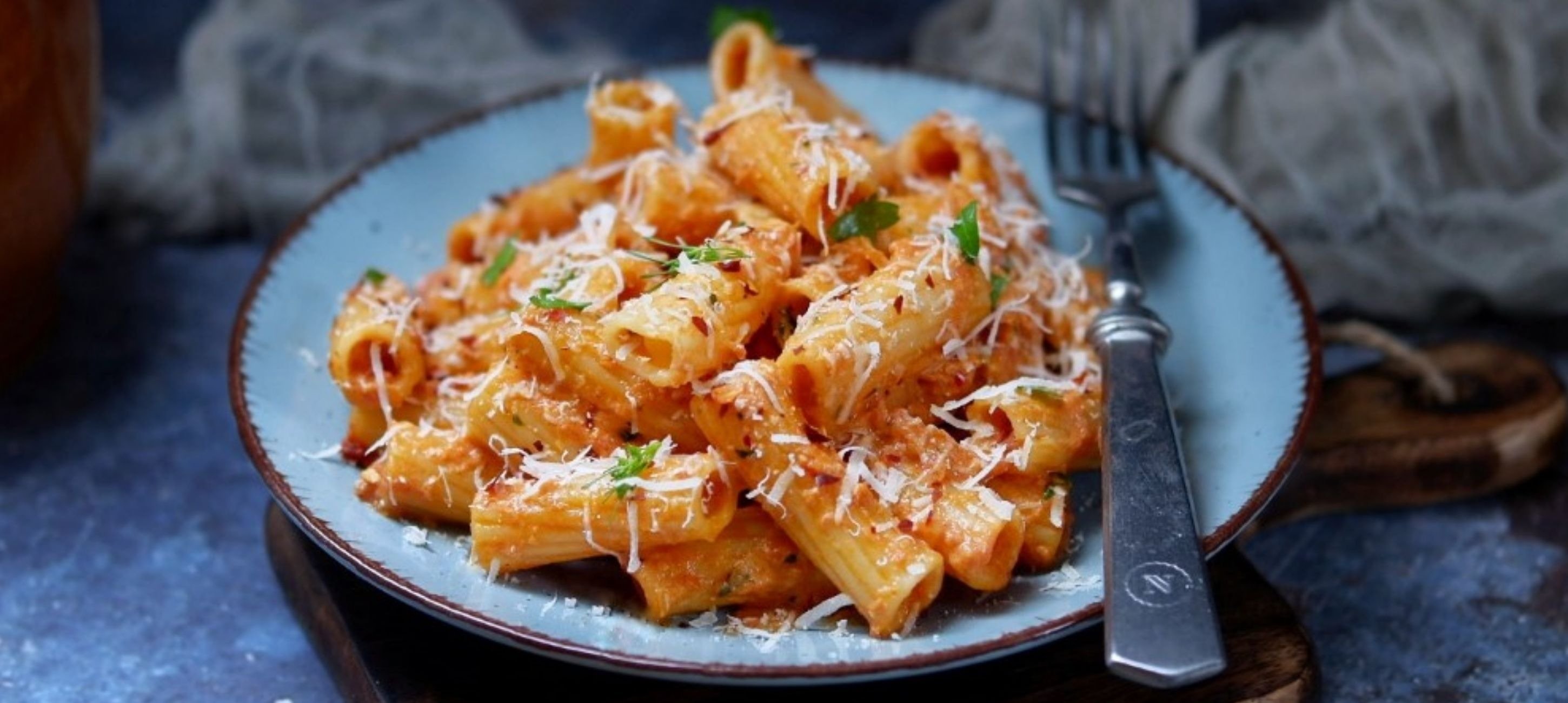 - 2Then blend the tomato mixture until smooth. Pour in the vodka and let the alcohol evaporate; it should be evaporated after five minutes. Remove the pan from the heat and pour in the cream, then do not cook further. Mix everything together and season with salt and pepper if necessary. At this stage, also add chili to taste.
