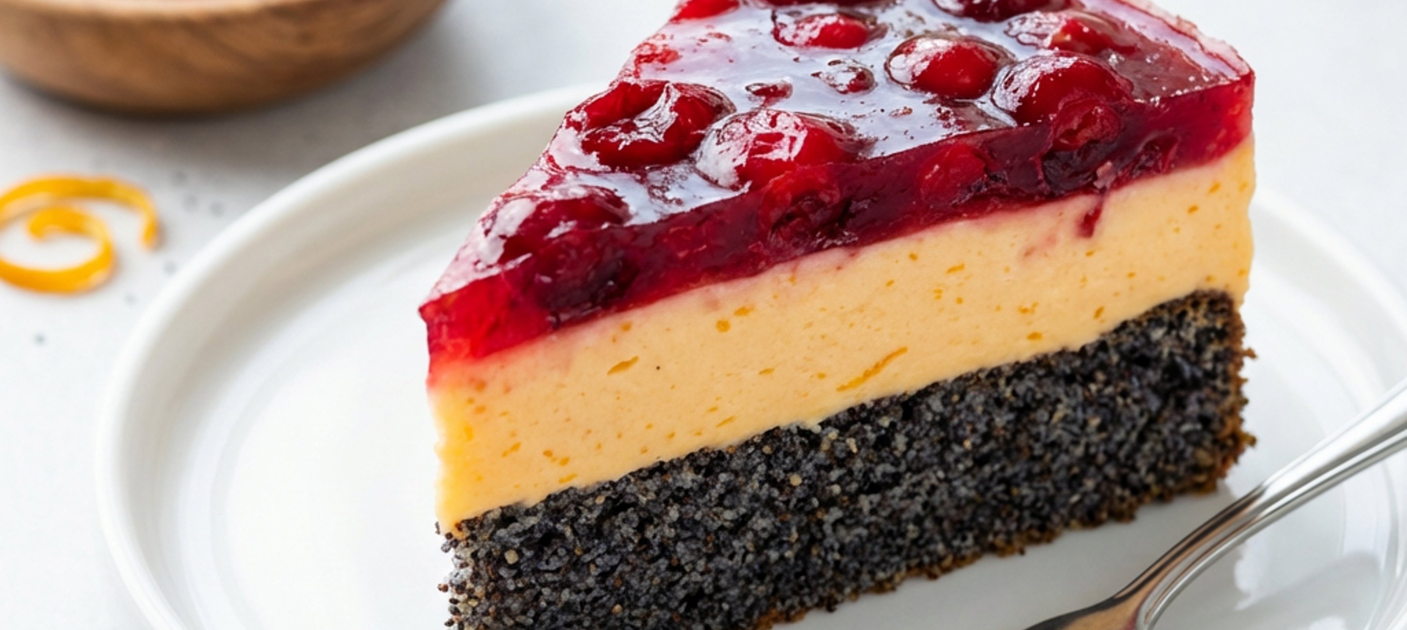 - 3Krém rozetřeme rovnoměrně po celém makovém korpusu uzavřeném v dortové formě, na povrchu ho uhladíme do rovna. Dortovou formu vložíme do ledničky, aby krém ztuhl.
