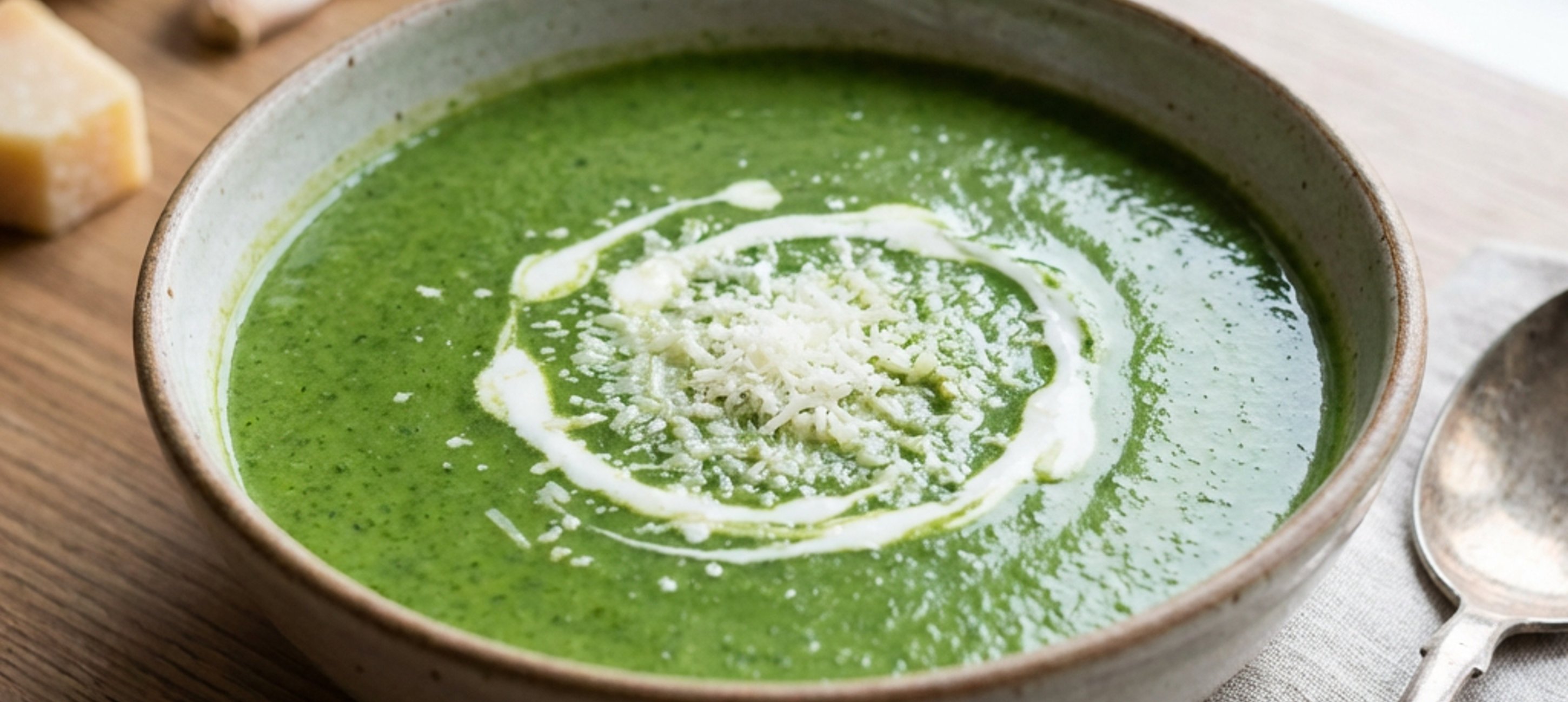 - 2Přidáme vývar, česnek, sůl a smetanu. Rozmixujeme tyčovým mixérem. Nakonec posypeme parmazánem.