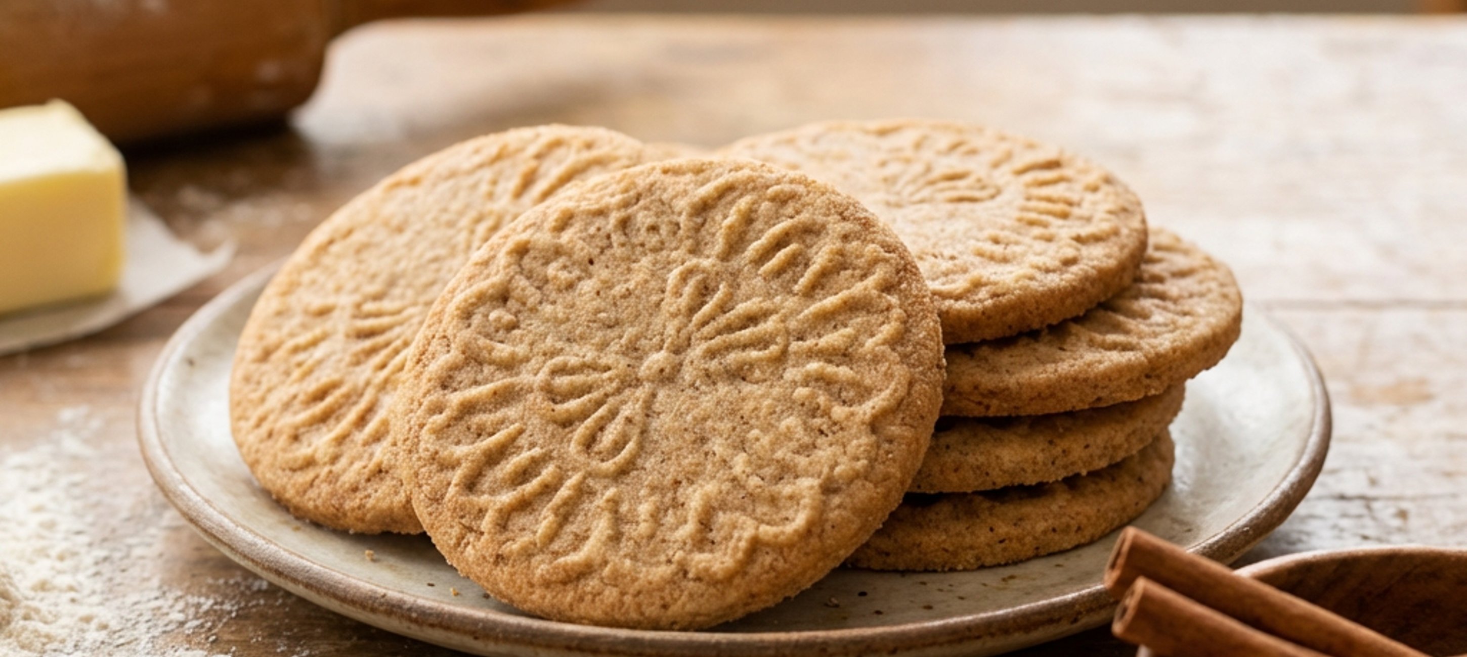 - 2Vychlazené těsto lehce zpracujeme v rukou na vále a rozválíme na plát silný 5 mm, pokud máte ozdobný váleček, můžete těsto na závěr přejet jím. Vykrajujeme kolečka o ∅ 6 cm. Pokud nemáte ozdobný váleček, ale razítko na sušenky, můžete použít to, těsto po upečení udrží vzor. Kolečka klademe na plech vyložený pečicím papírem v menších rozestupech.
