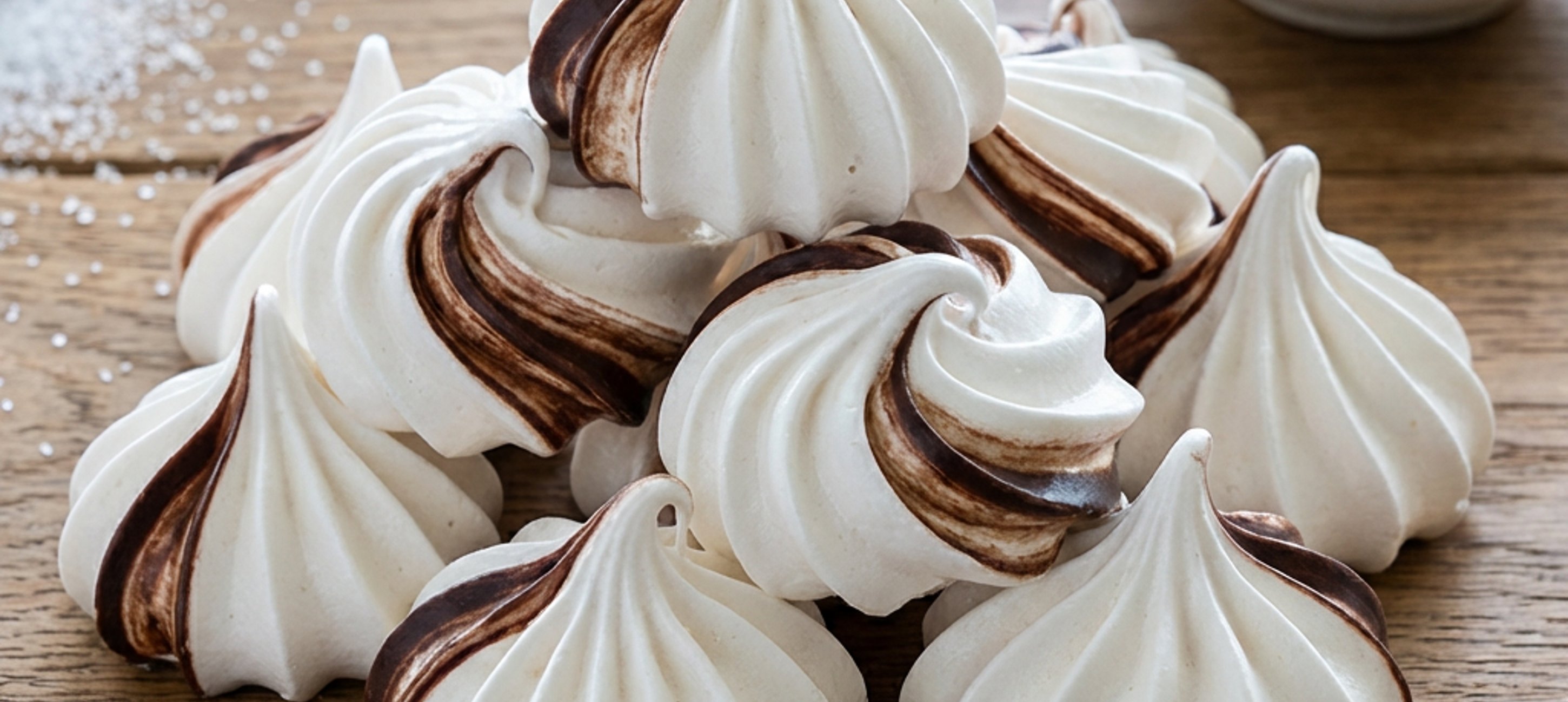 - 3Cukrářský sáček se zdobicí špičkou (použila jsem Wilton 1M) naplníme sněhem a na jednu stranu sáčku nalijeme rozpuštěnu čokoládu. Na plech vyložený pečicím papírem stříkáme v nevelkých rozestupech větší pusinky.