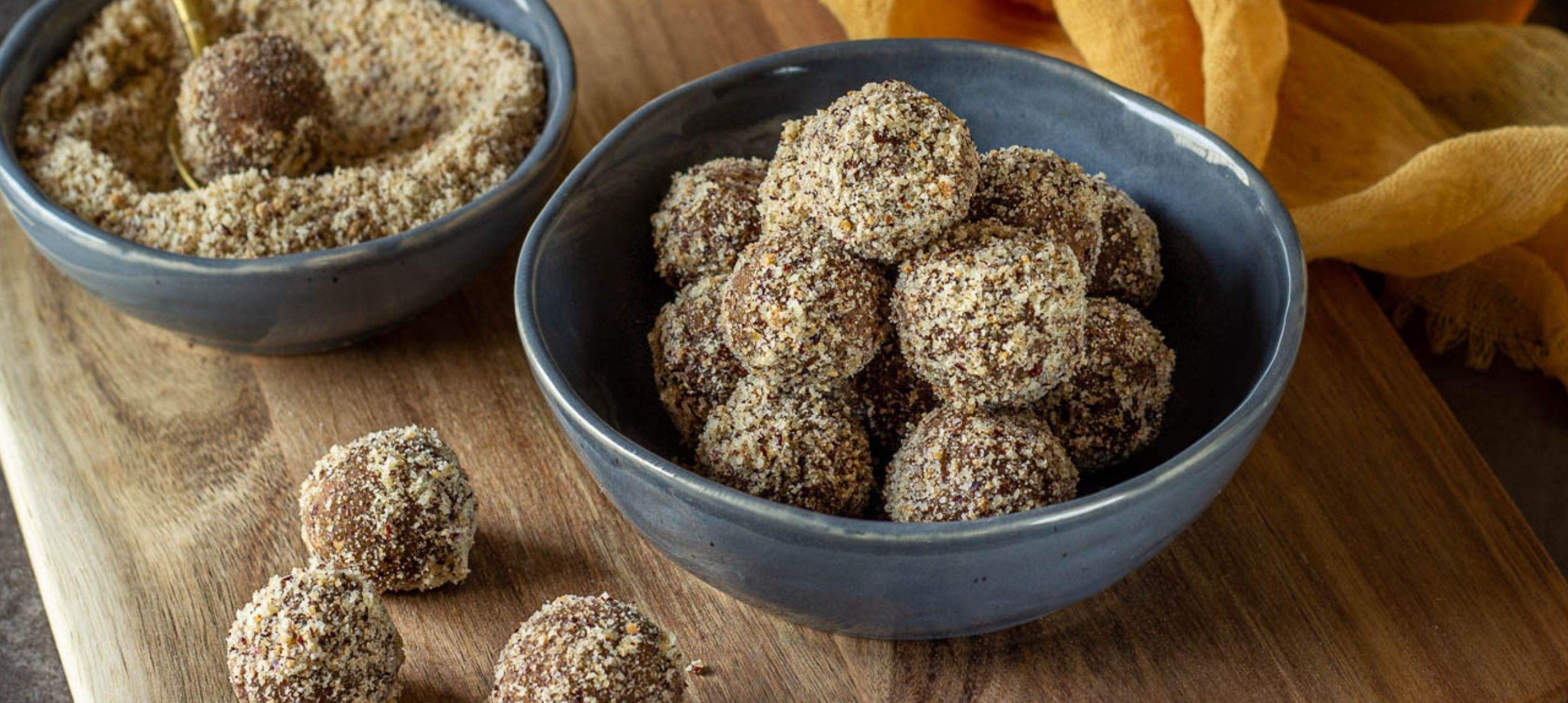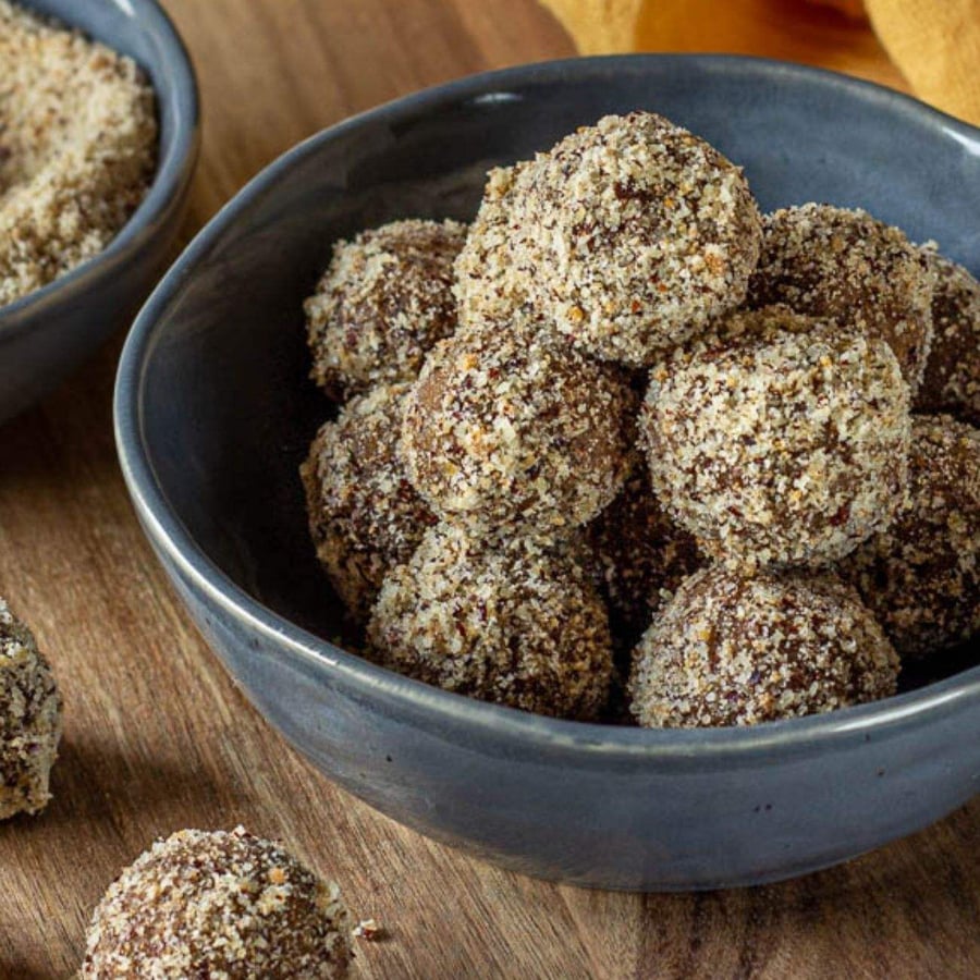- 4Crumble the cooled sheet with your hands or using a mixer. Set aside approximately 3 tablespoons and mix with ground nuts. This will create a mixture for coating the balls. Mix the rest with the date paste and condensed milk. Form balls with a diameter of 2.5 cm from the resulting mass and coat them in the prepared coating mixture.