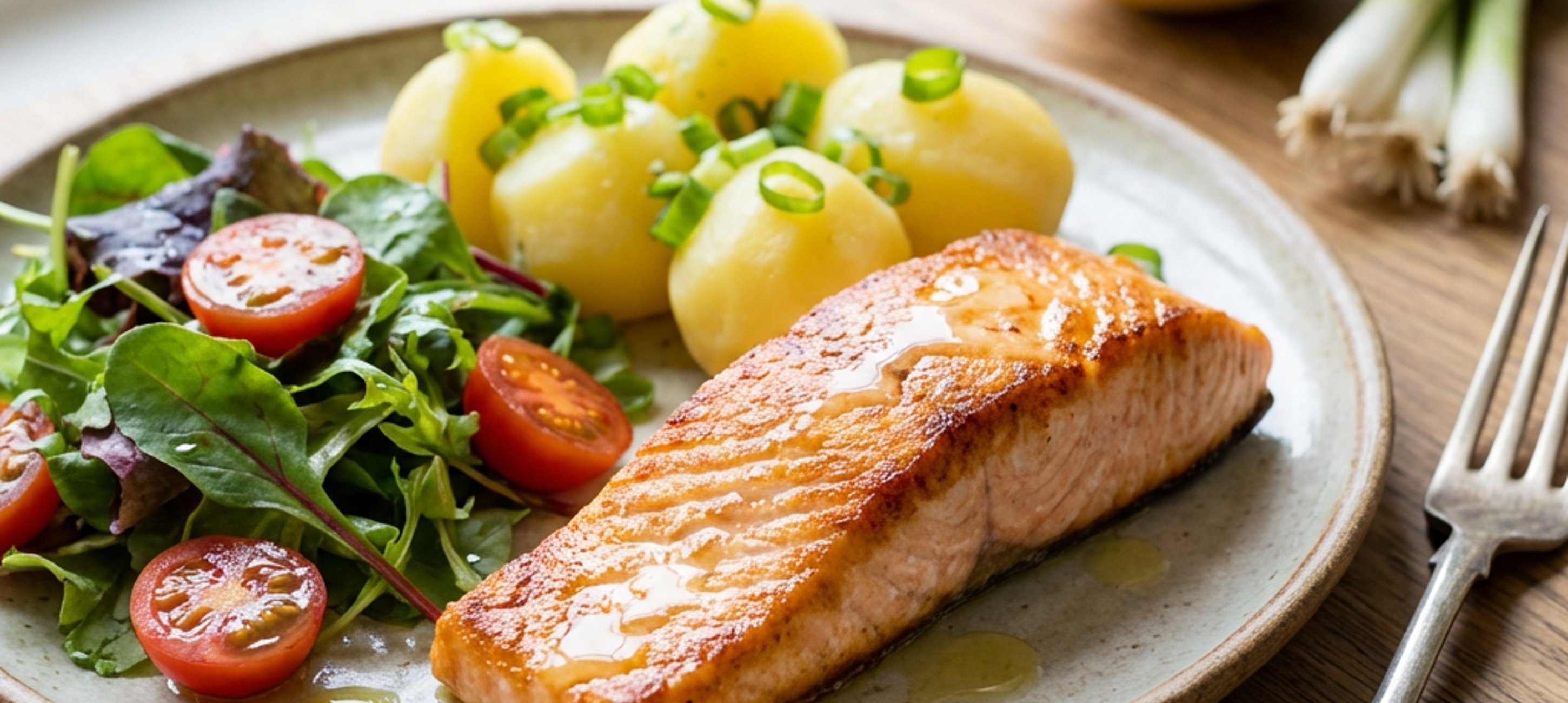 - 3Hotového lososa pokapeme citronem, brambory posypeme jarní cibulkou a můžeme podávat.