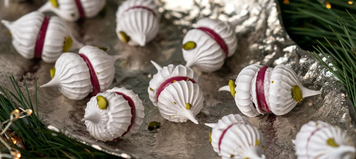 - 2Pipe with the chosen tip onto baking paper on a prepared baking sheet at least 2-3 cm apart and top with halved pistachios.