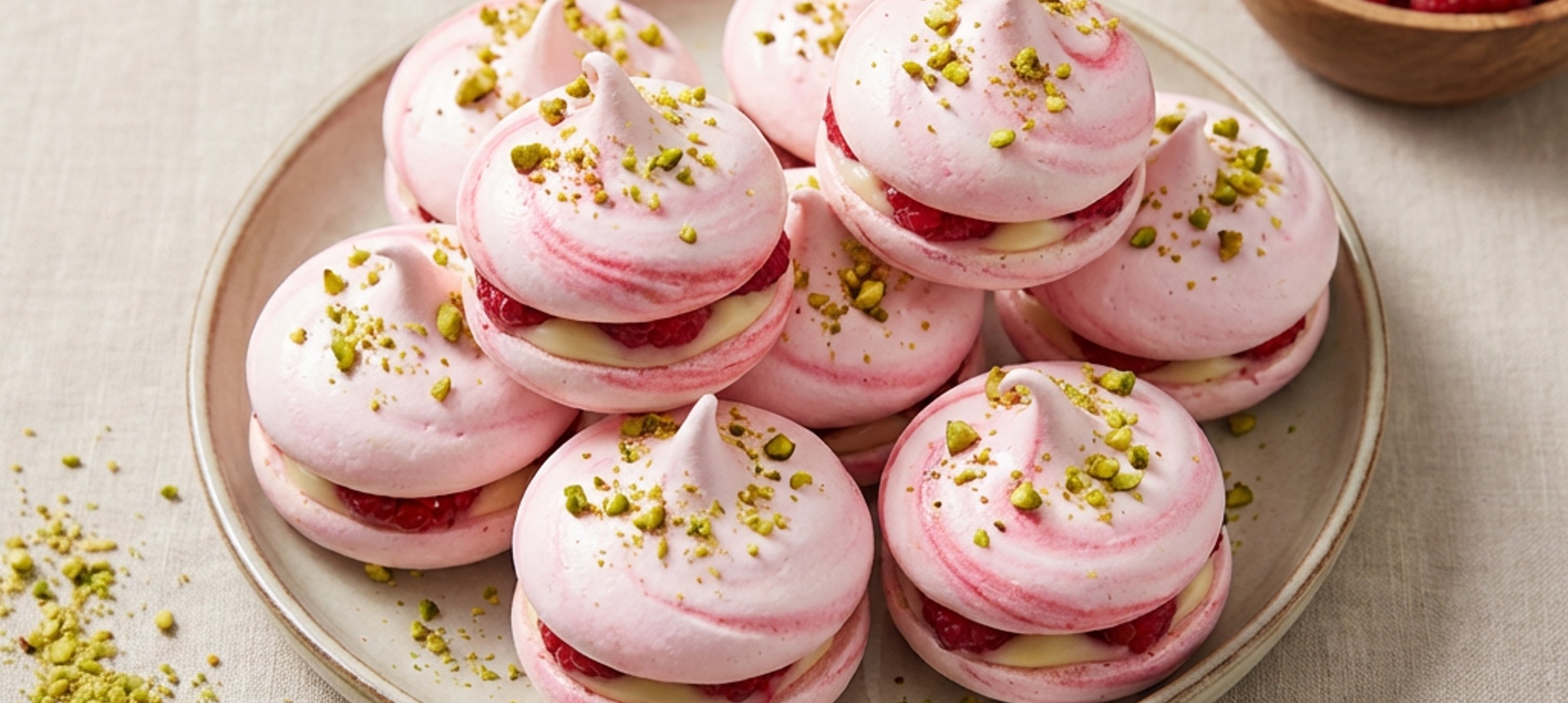 - 3Srovnejte si pusinky podle velikosti a vždy dvě k sobě krémem spojte (ideální je použít cukrářský sáček s kulatou špičkou – naneste na jednu pusinku a druhou ji přiklopte).