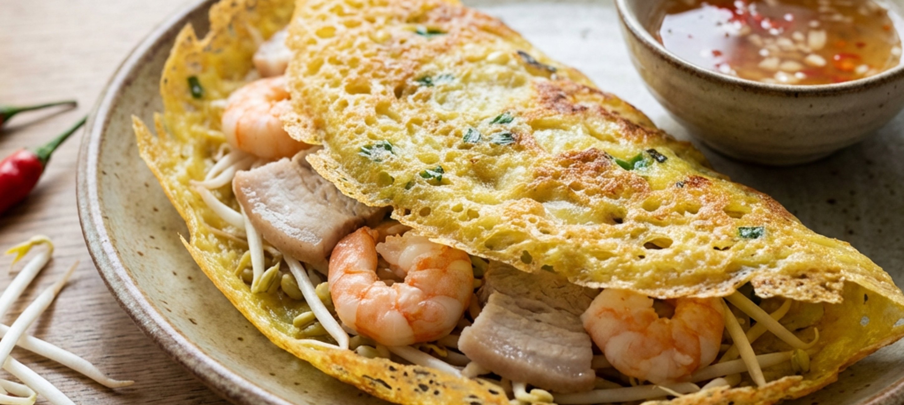 - 1Ve velké míse smíchejte rýžovou mouku, tapiokový škrob, cukr, sůl a kurkumu. Za stálého míchání přidejte kokosové mléko. Poté přidejte 200 ml vody. Do těsta nakrájejte jarní cibulku. Nechtě těsto chvíli odpočinout.