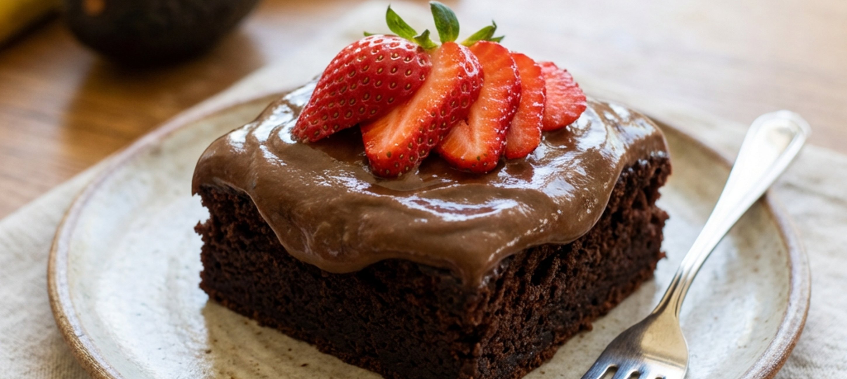- 2Po upečení nechte dort vychladnout ve formě a mezitím si připravte čokoládový krém. V kuchyňském robotu vymíchejte dohladka banány, avokáda, kakao a med. Krém poté naneste na vychladlý dort. Hotový dort dejte do ledničky, nechte odležet alespoň 2 hodiny a poté podávejte.