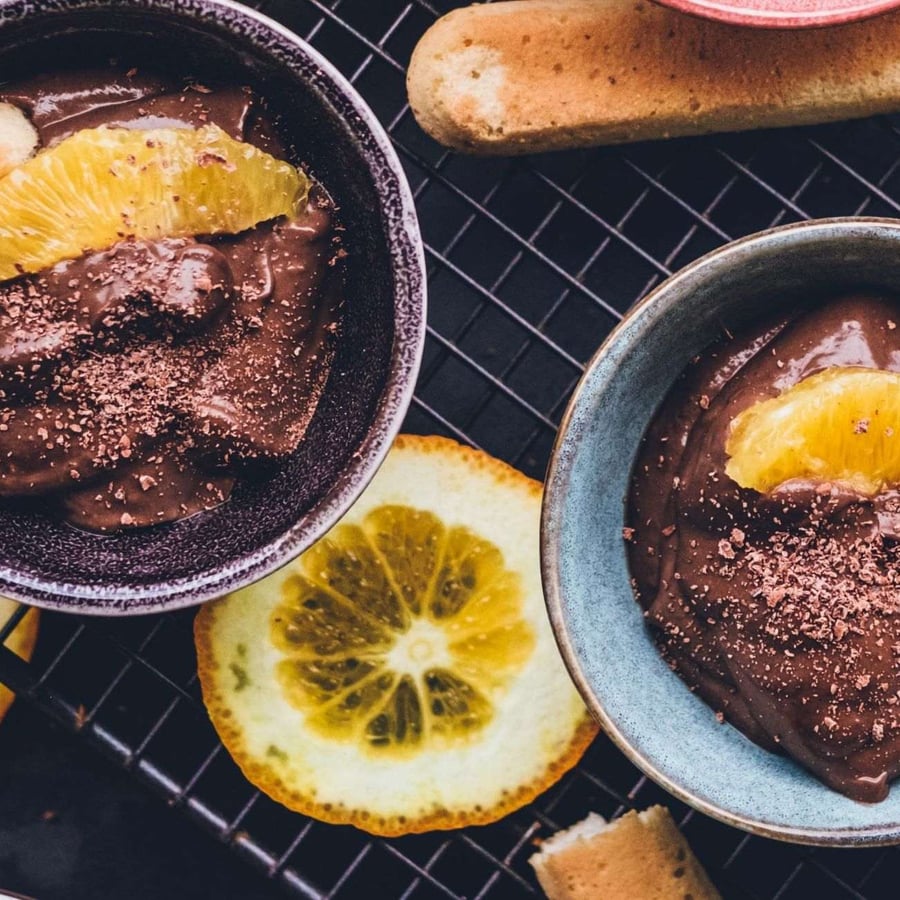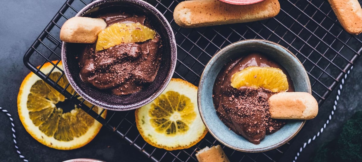 - 2Transfer the cream into small bowls and garnish with orange segments.