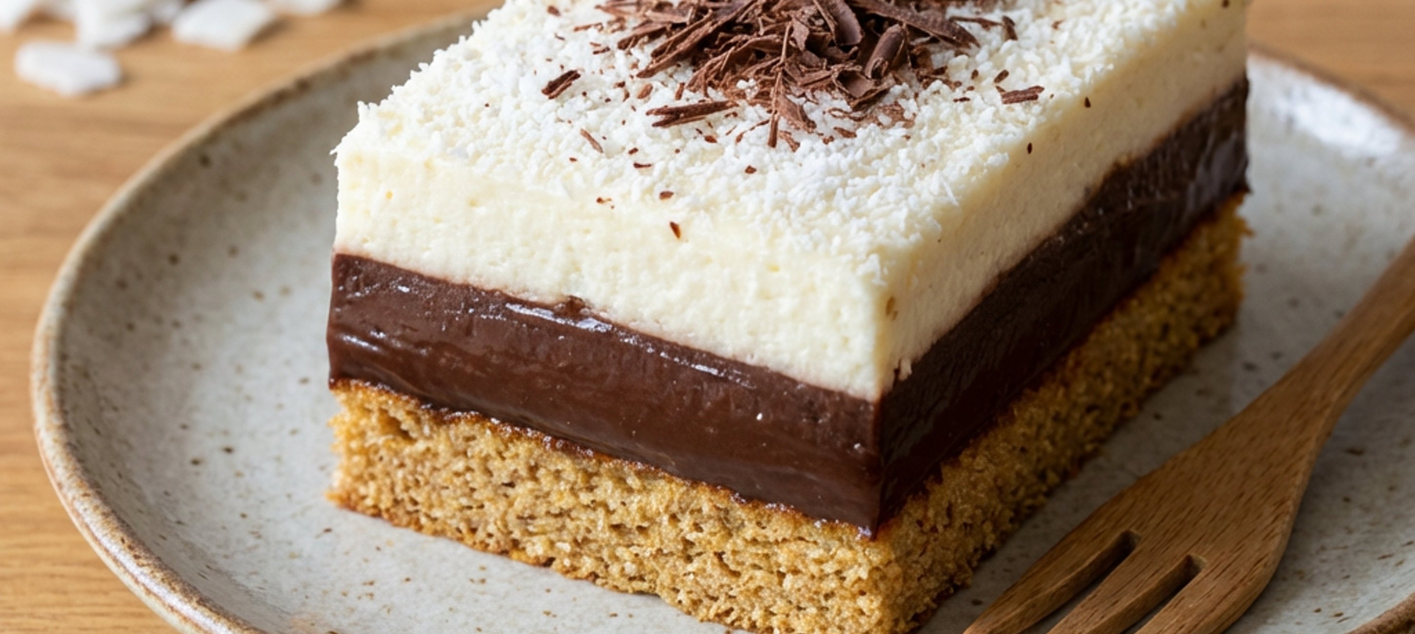 - 5Nakonec tvarohovou část posypte kokosem a najemno nastrouhanou čokoládou a nechte ještě alespoň 1 hodinu odležet v chladu. Po odležení nakrájejte na jednotlivé řezy a podávejte.