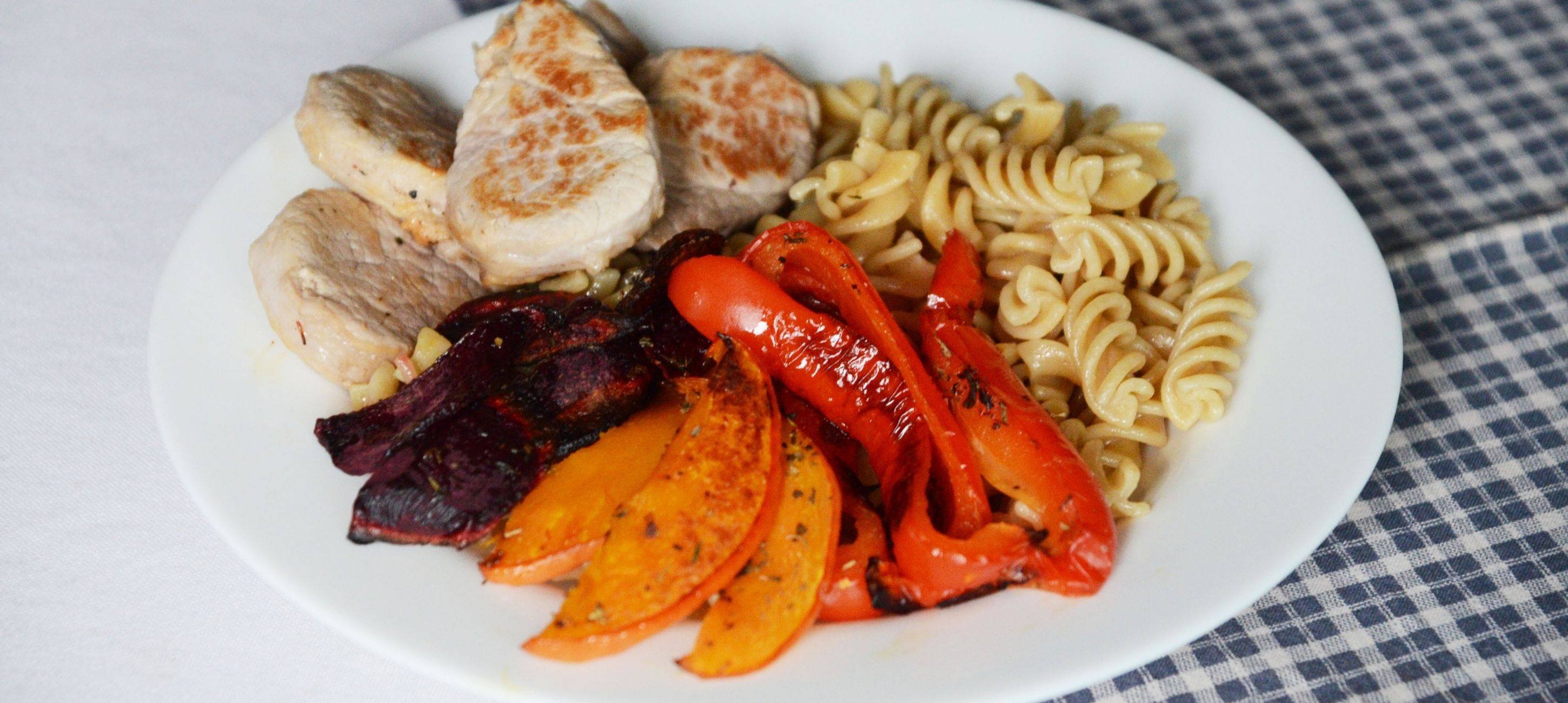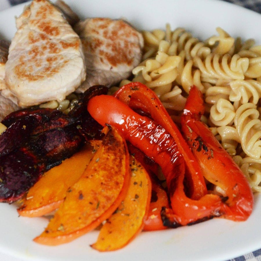 - 1Slice the vegetables and arrange them on baking paper. Brush with oil, you can measure about half a tablespoon. Sprinkle with herbs, salt, and bake at 200 °C for about 20 minutes.