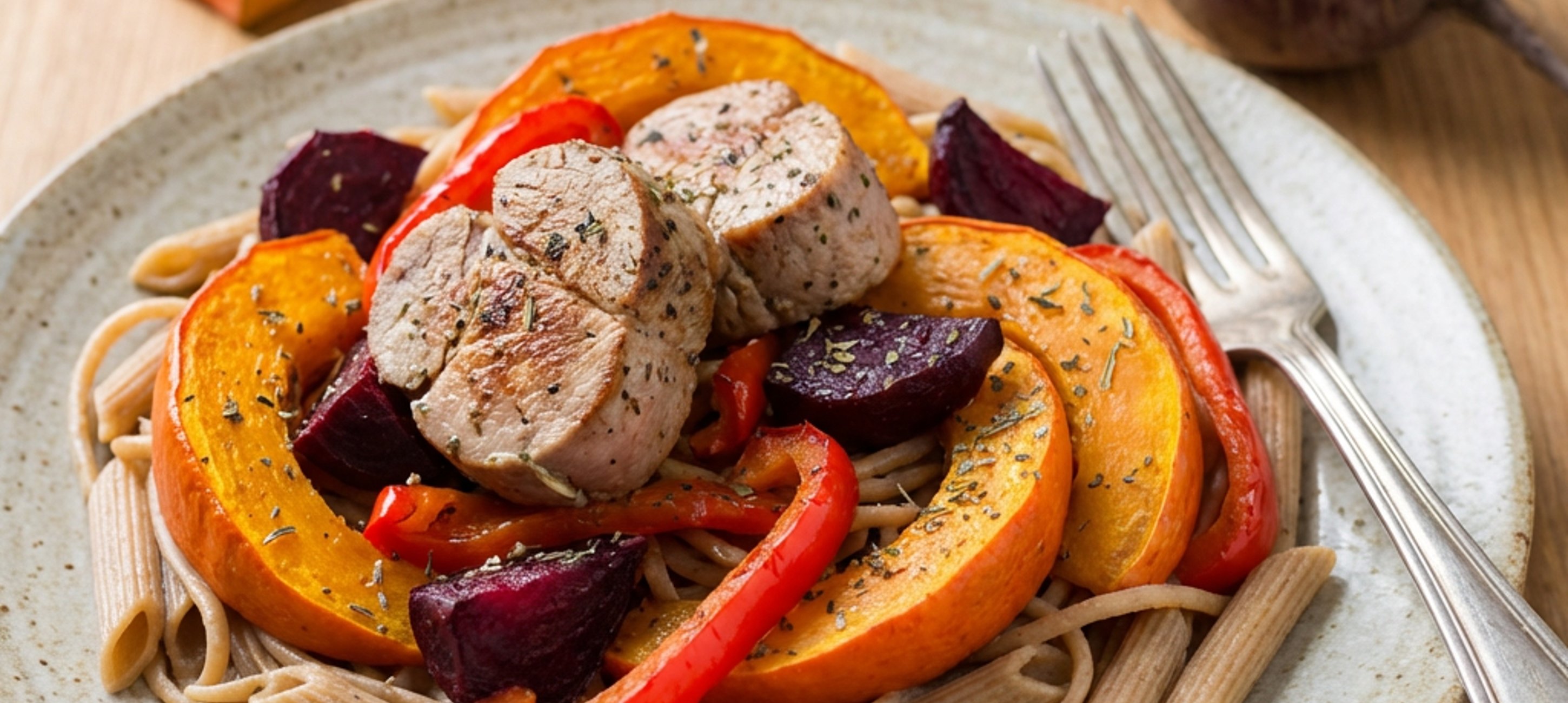 - 2Zeleninu nakrájejte na plátky a vyskládejte na pečící papír. Mašlovačkou potřete olejem, odměřit si můžete zhruba polovinu polévkové lžíce. Posypte bylinkami, osolte a na 200 °C pečte cca 20 minut.