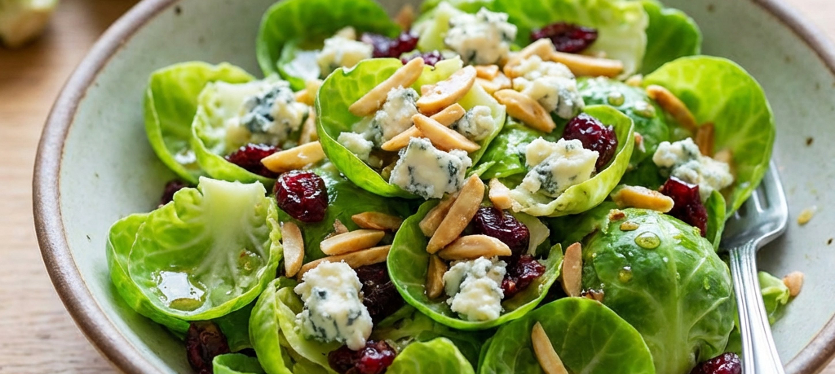 - 3Metličkou smíchejte ingredience na zálivku. Kapustové lístky vyjměte z ledové vody a nechte okapat, případně je vysušte v odstředivce na salát. Jemně promíchejte se zálivkou a rozdělte na talíře. Zasypte mandlemi, brusinkami a rozdrobenou nivou a ihned podávejte s kouskem čerstvého pečiva.
