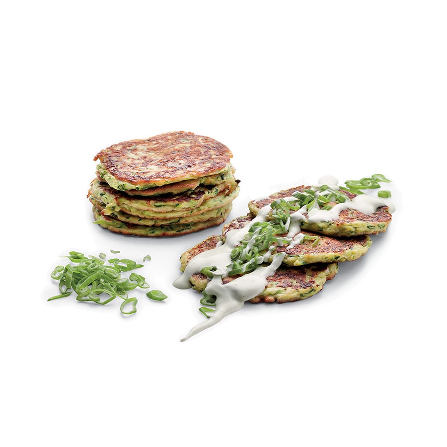 - 8Placky podáváme s ochucenou zakysanou smetanou a jarní cibulkou.