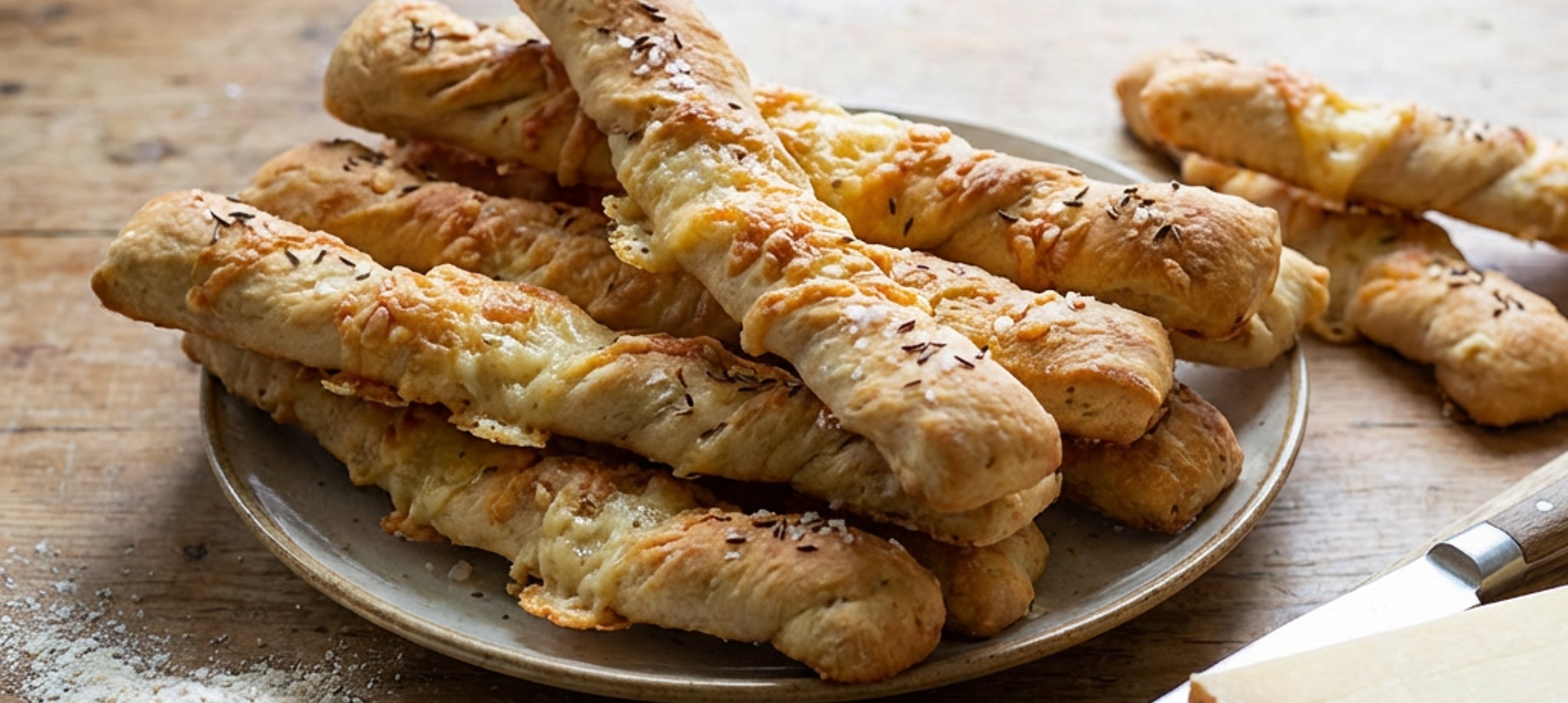 - 1Mléko dohromady s máslem rozpustíme v kastrolku a necháme lehce vychladnout. Sýr nastrouháme na jemném struhadle. Mouku prosejeme, přidáme droždí, vejce, sůl, sýr a prochladlé mléko s máslem. Vypracujeme hutnější těsto. Mísu přikryjeme utěrkou a dáme na jednu hodinu kynout na teplejší místo.